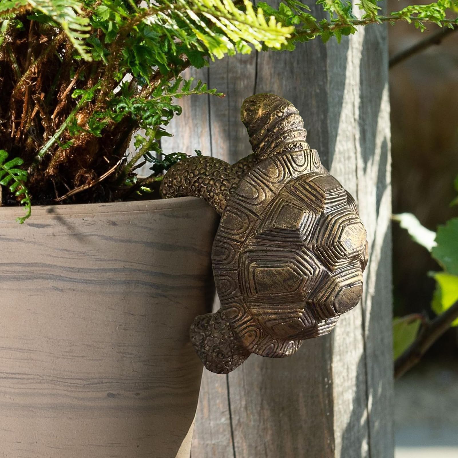 Charming Vintage Bronze Design: This mini Snail/Tortoise/Dinosour planter pot hugger features an antique bronze finish, adding a touch of rustic elegance to your garden patio or home decor