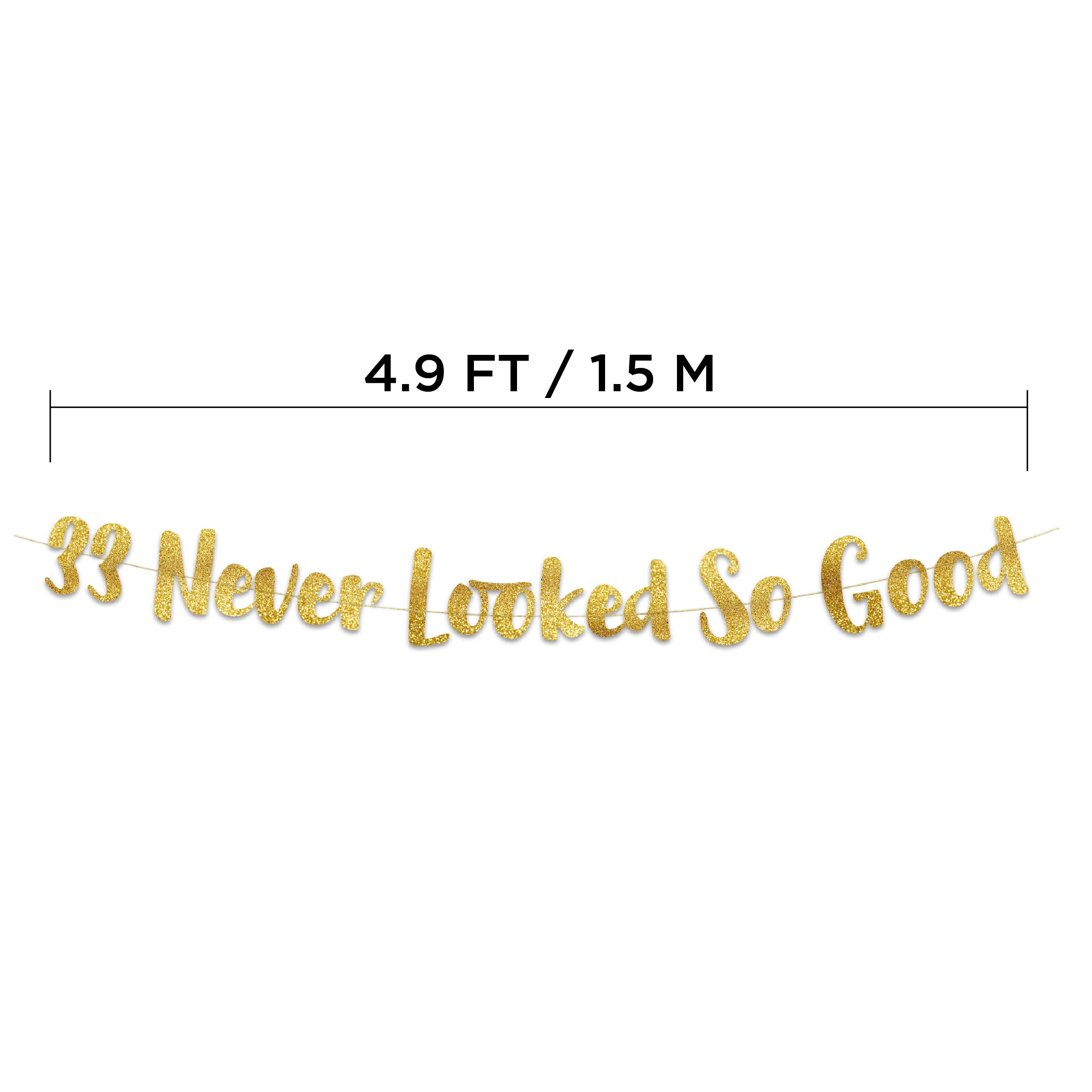 33 Never Looked So Good Gold Glitter Banner – 33rd Birthday and Anniversary Party Decorations