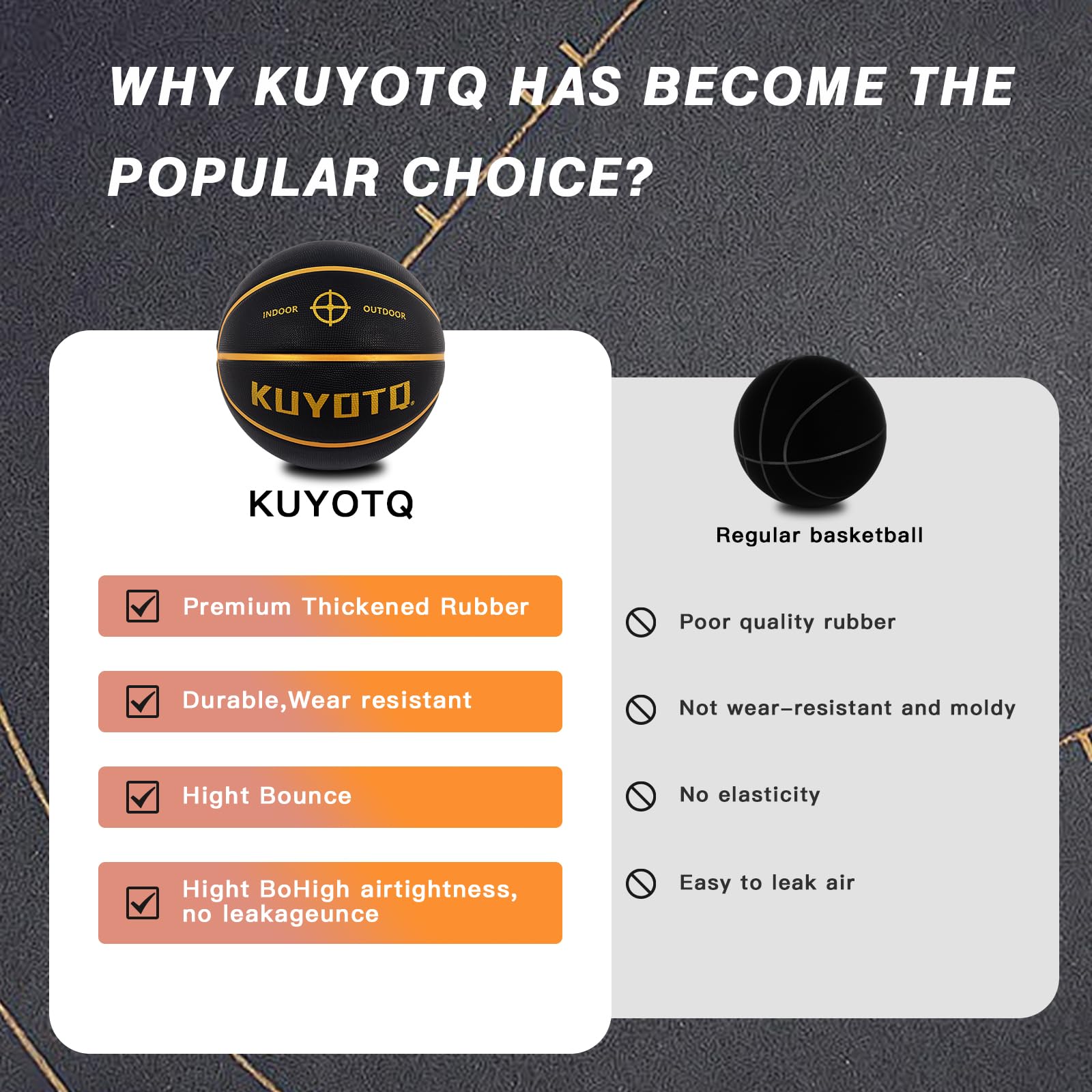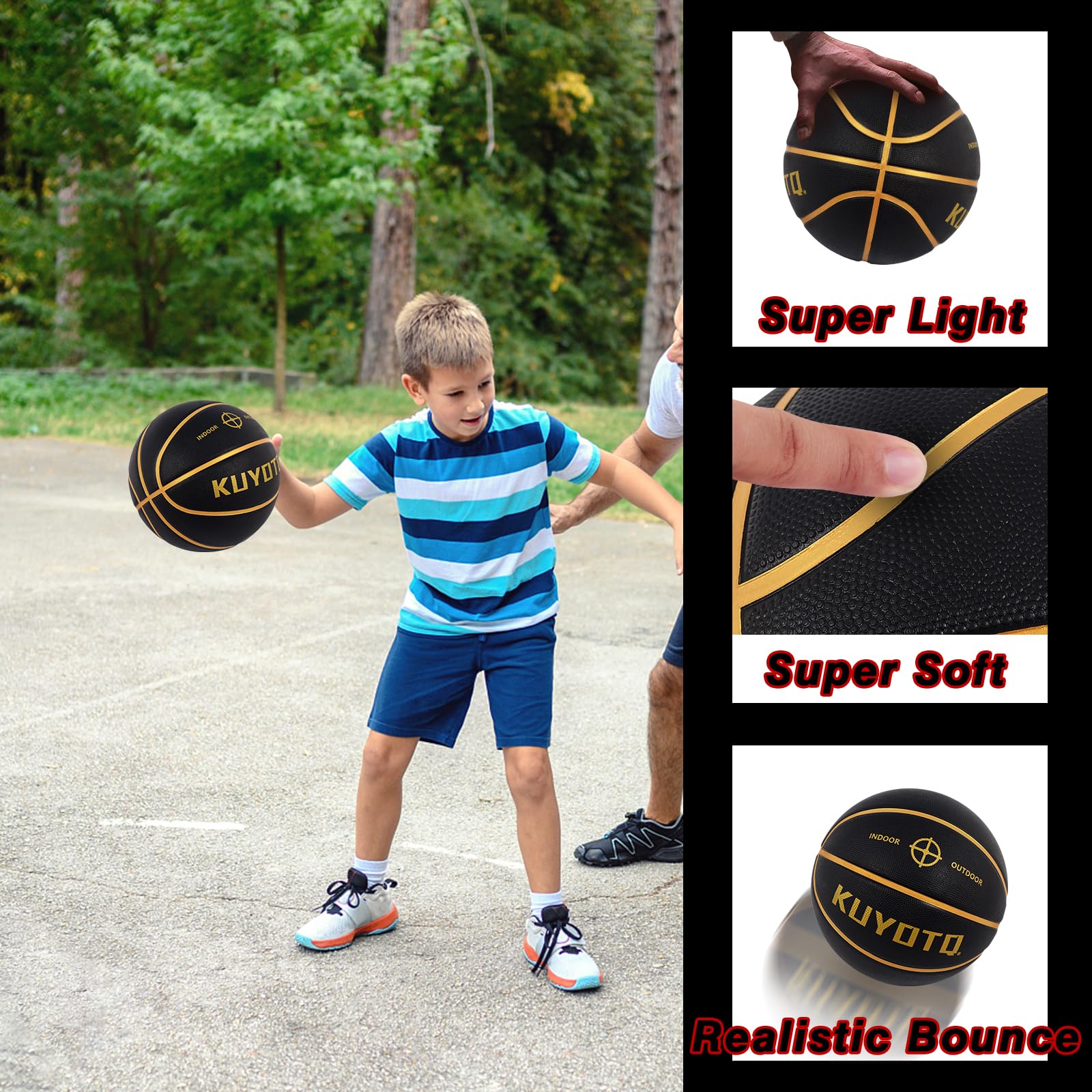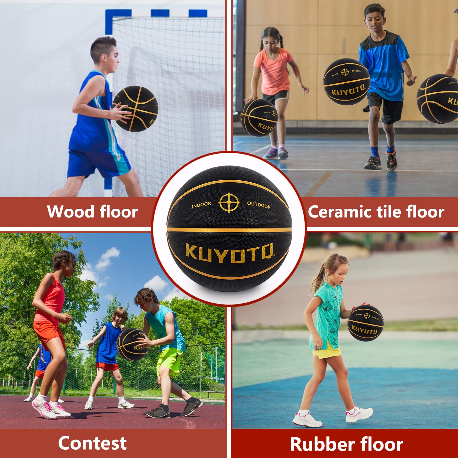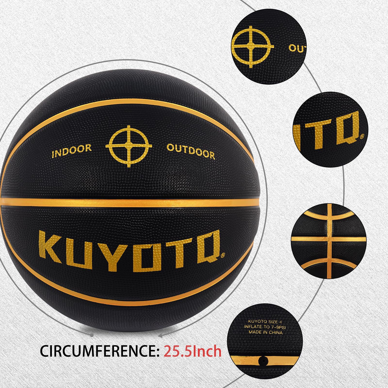 PREMIUM MATERIAL: Made of high-quality thickened rubber for the in&outdoor basketball, it is durable and wear resistant, it offers great hands feeling and incredible grip for bring great control for dribbling, passing, shooting.