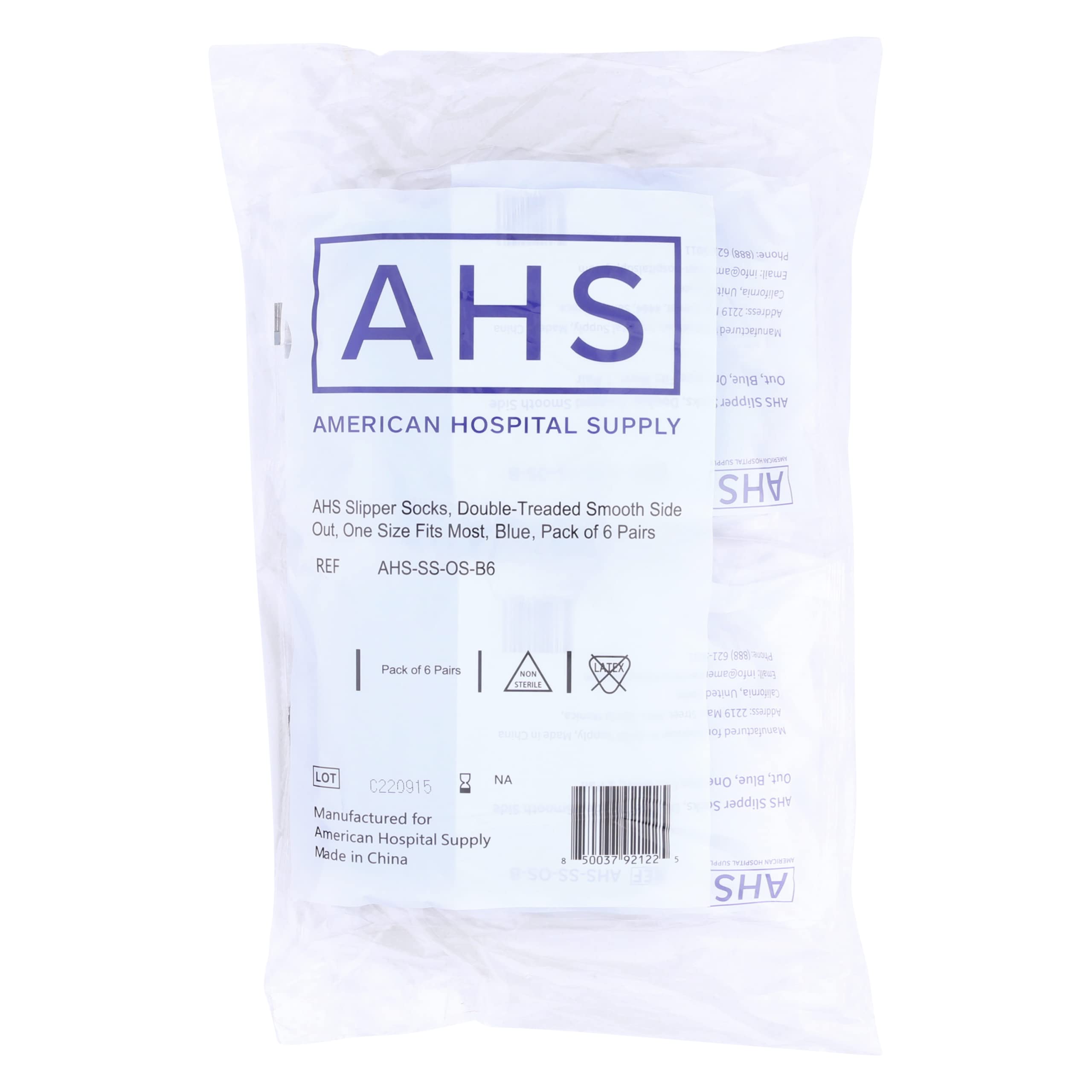 Product Specifications: The Hospital Slipper Socks are available in a single size that fits most. They are blue in color and come in a case of 48 pairs.