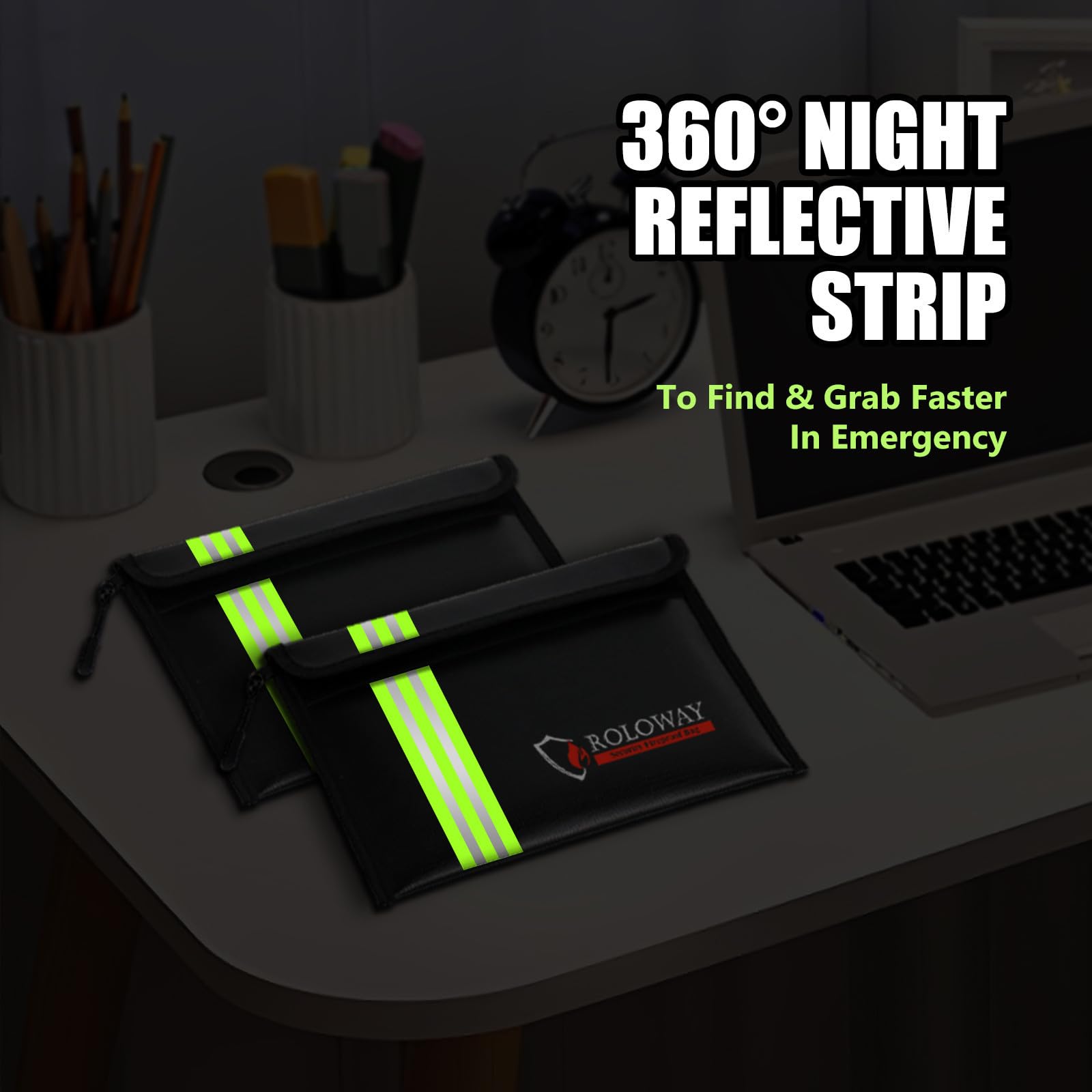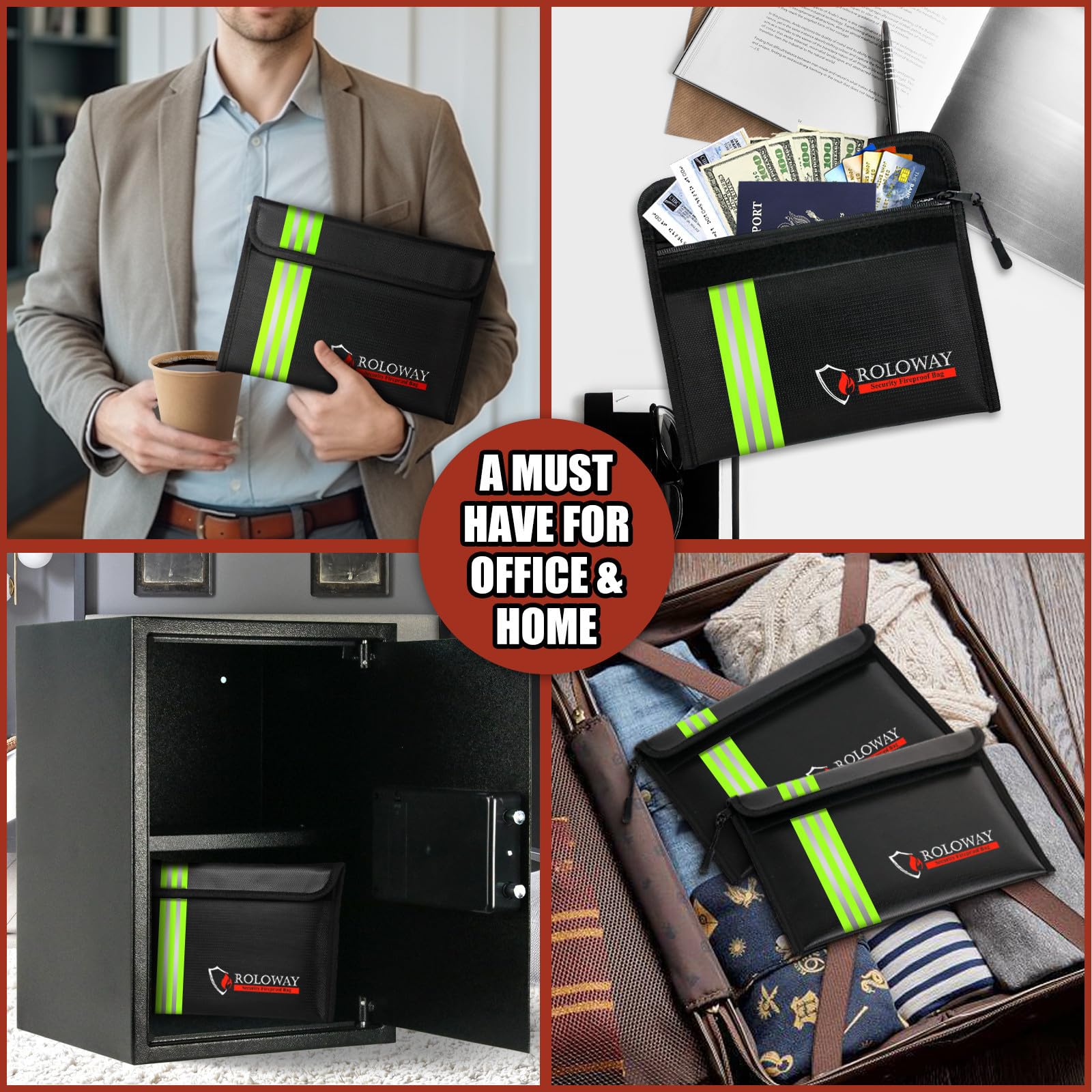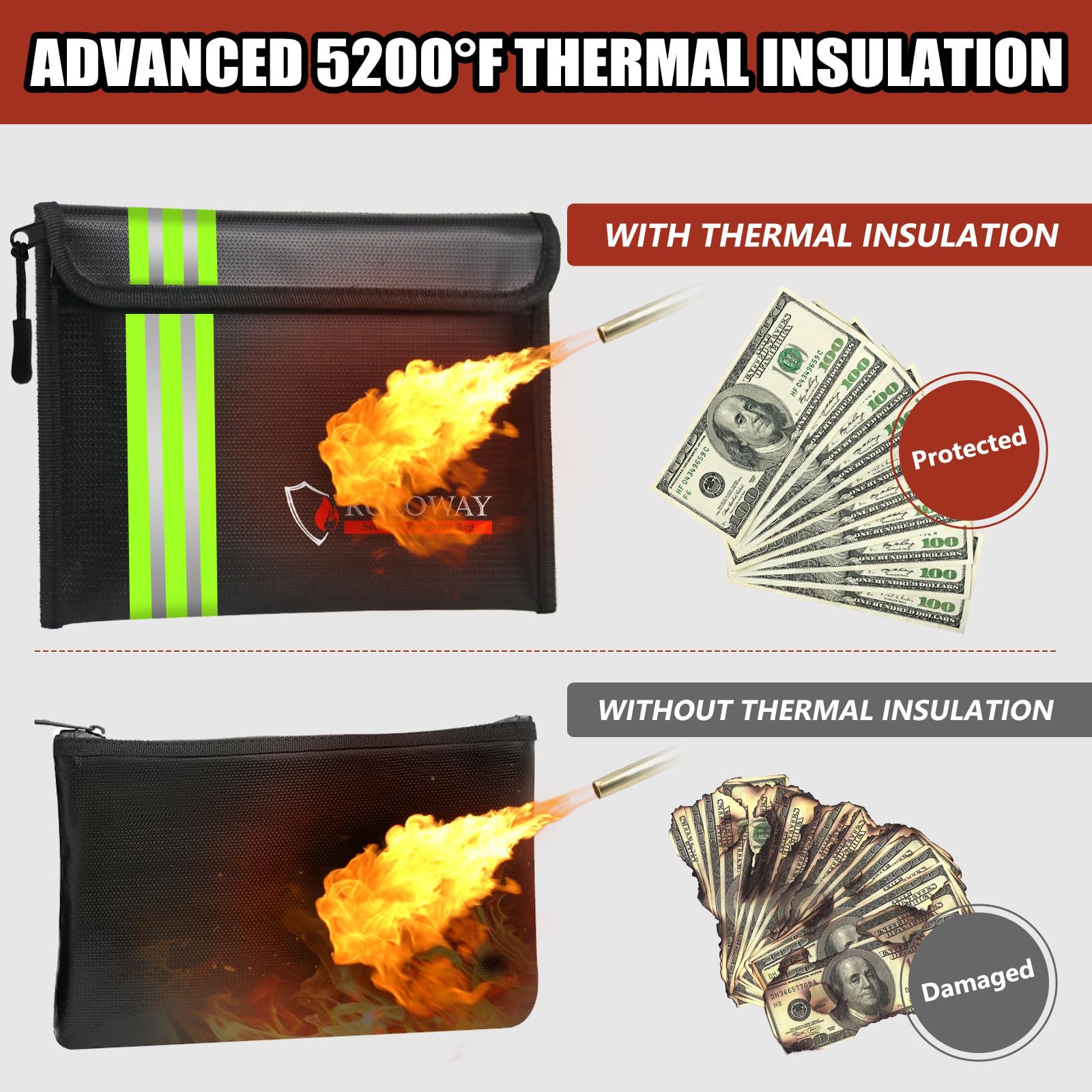 [REFLECTIVE STRIP & TRAVEL-FRIENDLY - EMERGENCY READY]: With the Reflective Strip, you could find our fireproof money bags very soon even at night, which means you could find & take your most precious items much easier and quicker. Coated with non-itchy water-resistant silicone, our fireproof bags allow direct handling without gloves. Designed to withstand all weather conditions, our fireproof bags ensure your cash, passport, and cards remain protected and are always ready for emergency Grab & Go.