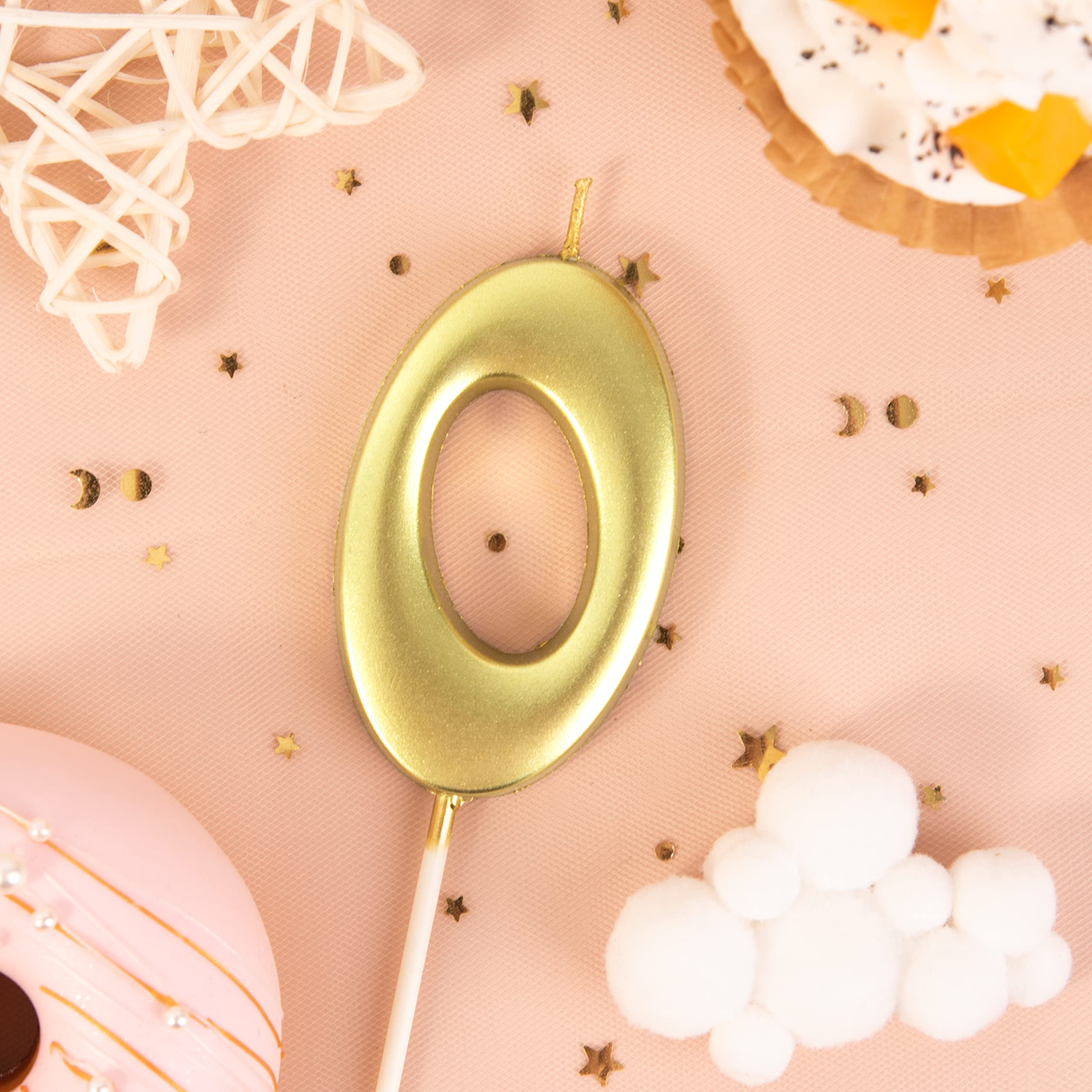 New: 2.76 Inch Large Elegant Gold 0 Number Birthday Candle designed to make your cake and birthday a unique and truly inspiring event.