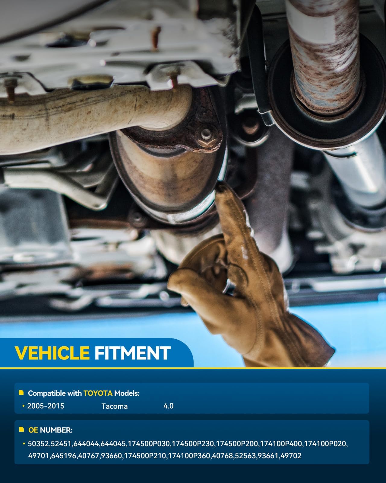 FITMENT : Catalytic Converter for Compatible with Toyota Tacoma 4.0L 4WD 2005 2006 2007 2008 2009 2010 2011 2012 2013 2014 2015, Tacoma 4.0L RWD 2011 2012 2013 2014 2015 # Manufacturer Part Number: 174500P030,174500P230,174500P200,49701,645196,644044,93660,644045,174100P400,174100P020,50352,52451,40767,40768,93661,49702,174100P360,52563,174500P210,41129