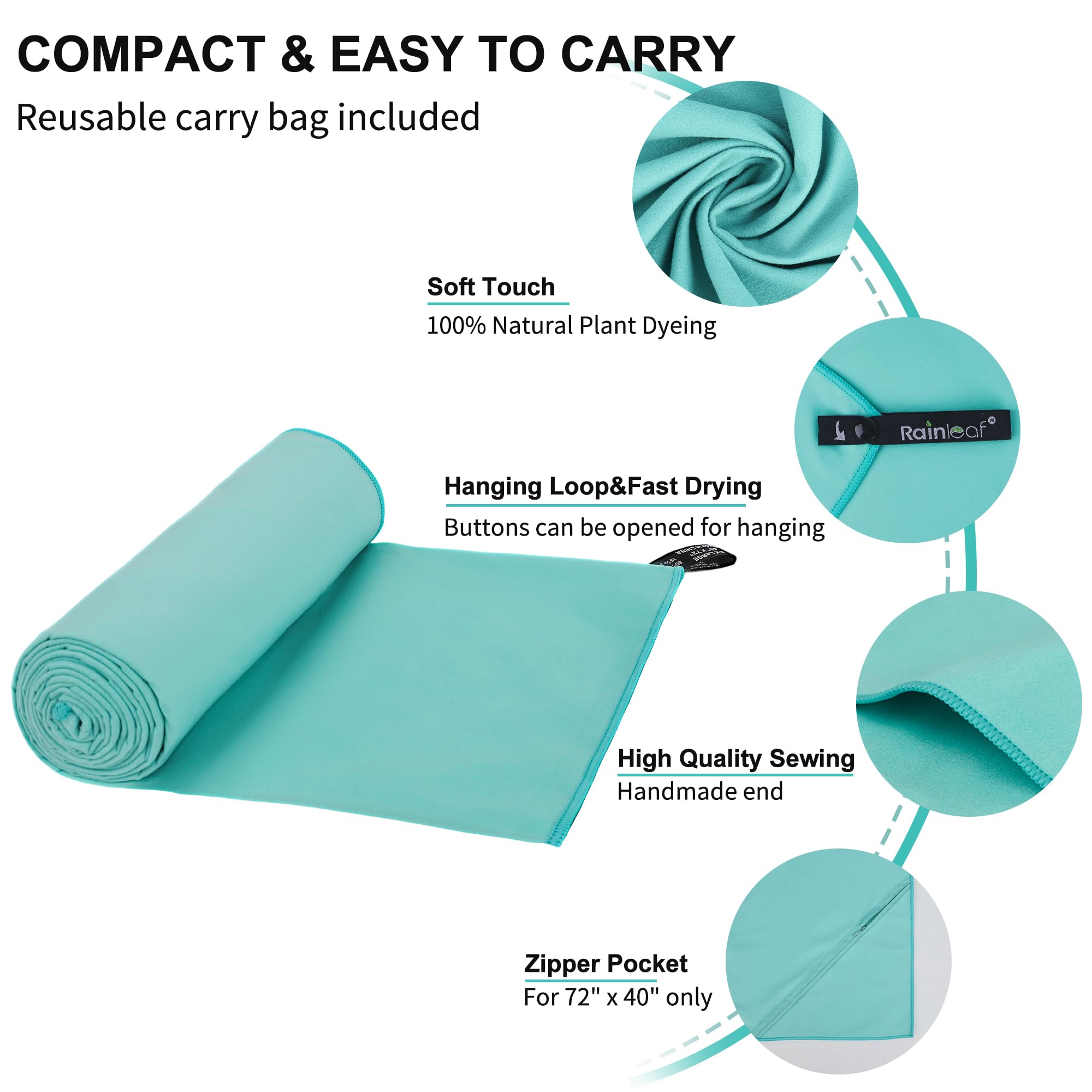This Rainleaf microfiber towel is also machine washable, sand resistant, breathable and durable. Ideal for traveling, hiking, swimming, bath, sports, yoga.