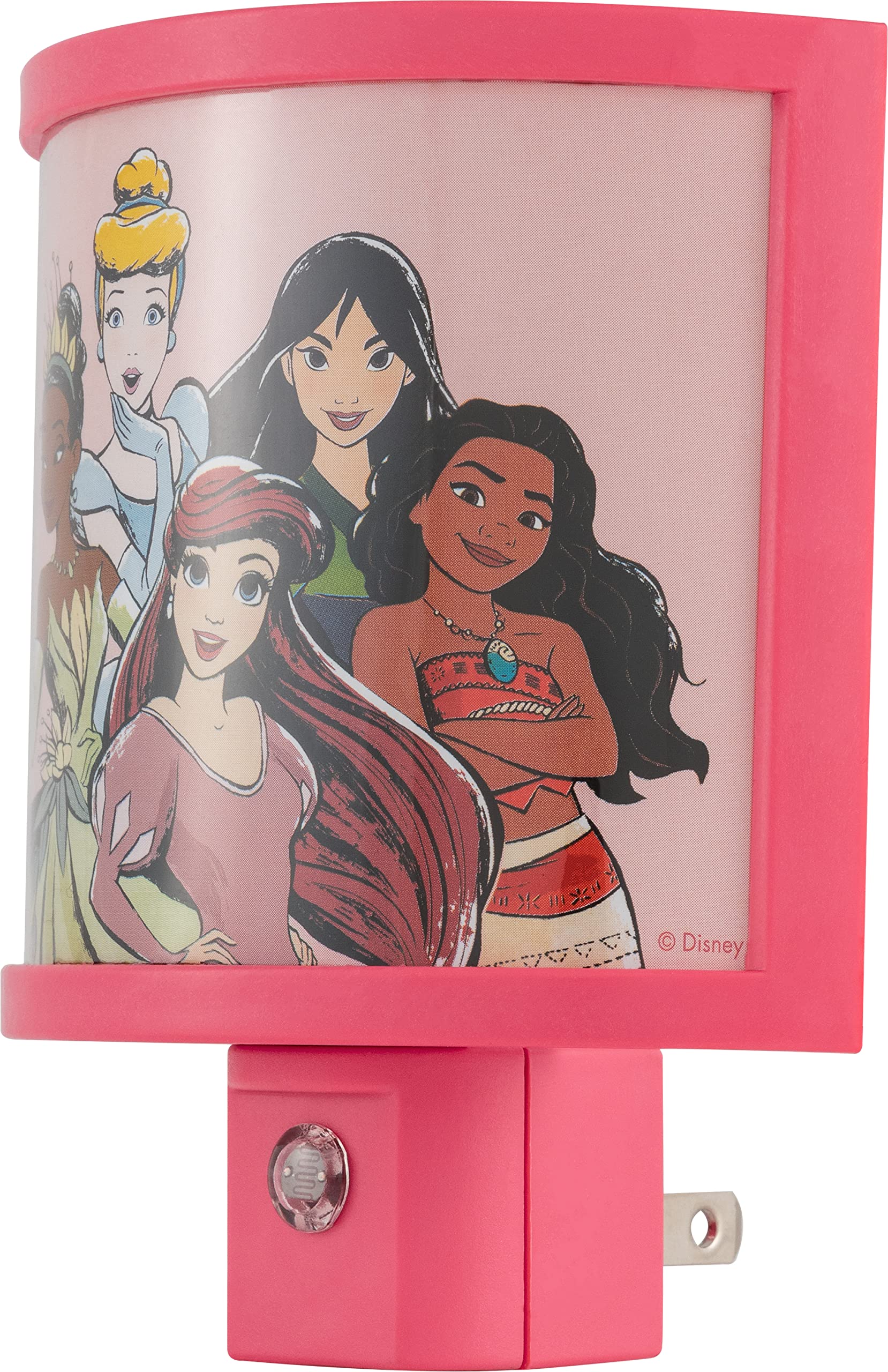 Let your child experience their very own fairytale magic with this Disney® Princess LED Night Light! Featuring colorful artwork of Arielle, Tiana, Mulan, Moana and Cinderella, this diverse group of princesses and heroines will inspire young children and bring a smile to their face. The wide wrap-shade design puts the royalty on full display while still leaving room for additional electronics. Fitting in perfectly anywhere in the home, this night light is perfect for kid’s bedrooms, bathrooms, playrooms, nurseries and more. Light-sensing technology gives children light when they need it the most — turning on at dusk, off at dawn. When the room becomes dark, the light will fill the space with a soft white glow to help them safely move around. In addition to automatically turning off when the room becomes bright, the high-quality LED is cool to the touch and will never need to be replaced. Certified and safe, this product has been fully tested and UL-certified for your peace of mind. With this automatic LED night light, you don’t have to live in a castle to enjoy this radiant showcase of Disney Princess power.
