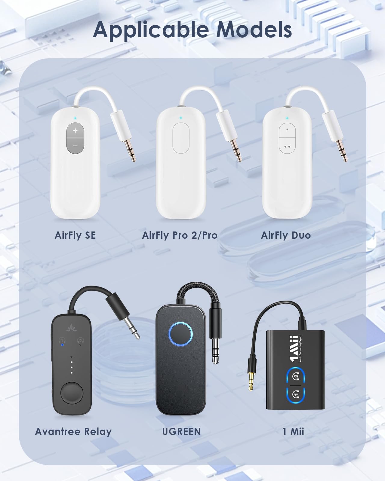 Hard EVA Case: This case is designed for the AirFly SE/Pro V2/Pro/Duo, Avantree Relay/1Mii Bluetooth wireless transmitter receiver. Comes with a 3.5mm jack AUX adapter for use with a variety of airplane audio interfaces