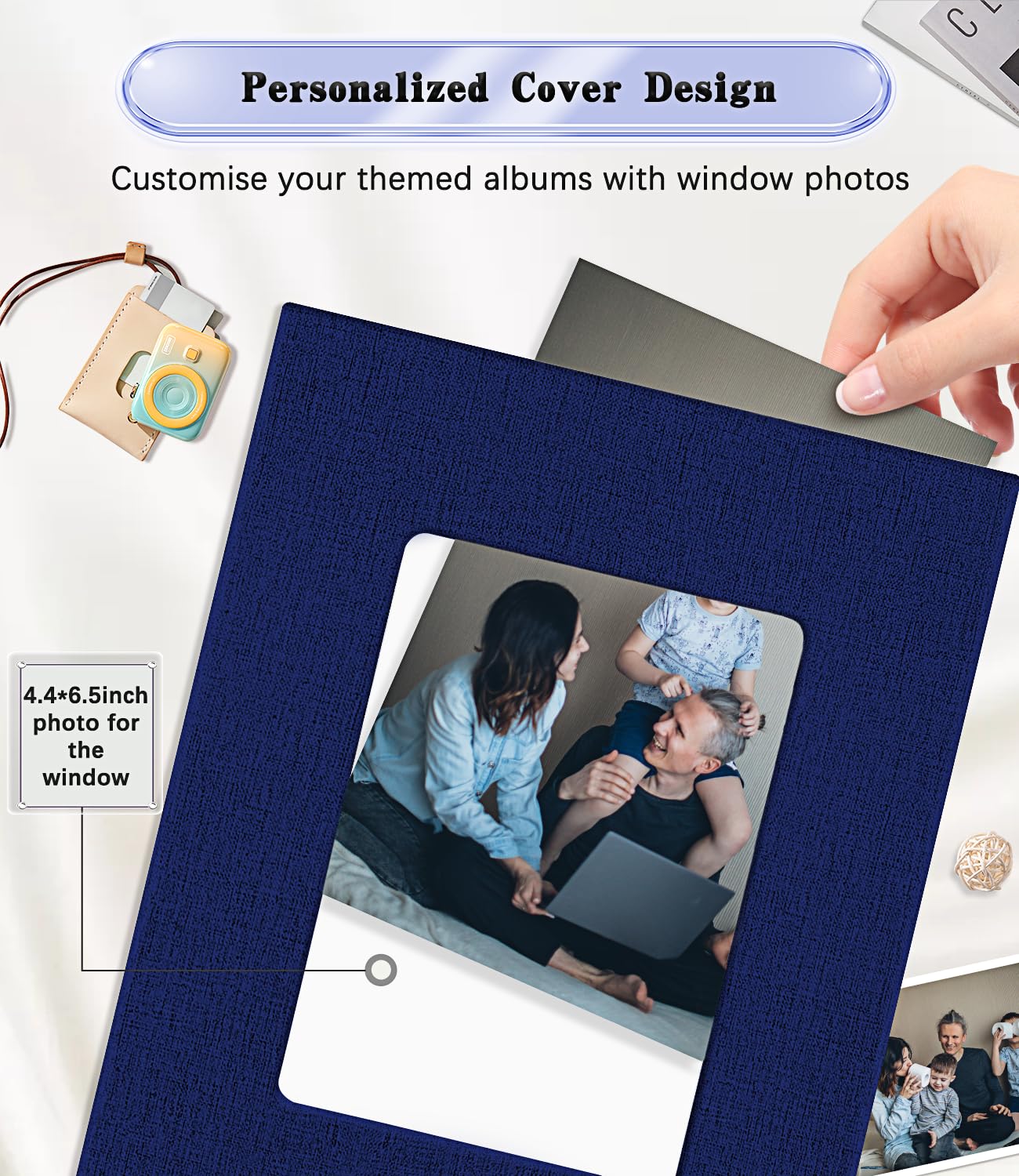 💖 Exquisite Window Design: This 4x6 photo album cover is wrapped in high quality linen, the classic linen cover not only adds vintage sophistication, but also ensures durability and protects your precious photos.The cover of the album has a flexible openable window with replaceable window photos (4.4*6.5 inch), customised to change your personal theme album.