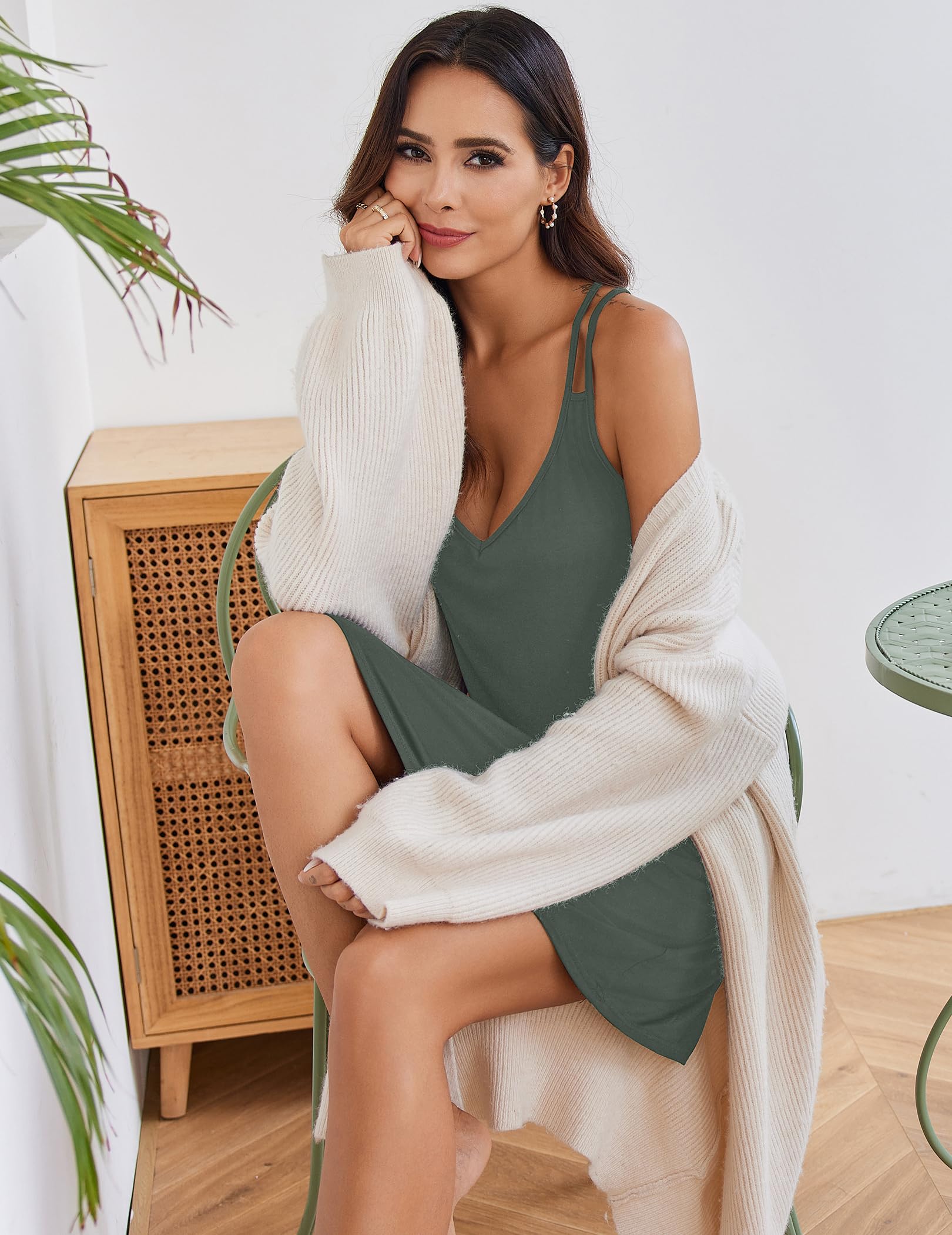 【Classic Women's Nightgown】Casual loose fitted and simple but fashion. Lightweight sleepshirt and women's pullover loungewear but the nightgown is stylish enough to bring out sensual delight. Multiple choices for you to choose the favorite. Racerback nightgown for women is soft to touch and allows comfortable and freely movement