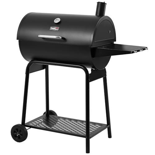 Whet Our Appetites from Royal Gourmet CC1830 Barrel Charcoal Grill Royal Gourmet CC1830 Barrel Charcoal Grill is a really good smoker that can whet our appetites for palatable meat. We cannot resist the taste of authentic smoky meat that are cooked to perfection over this charcoal grill. Imagine the falling-out-the-bone ribs and mouth-watering veggies impart deep smoky flavor into our buds, this fire box is versatile enough for us to smoke, grill and sear with direct or indirect cooking on the different cooking zones. Enough space makes it perfect for couples or several friends, and it is especially useful for outdoor cookouts in the patio, backyard and garden. Savor time with family and friends with Royal Gourmet.