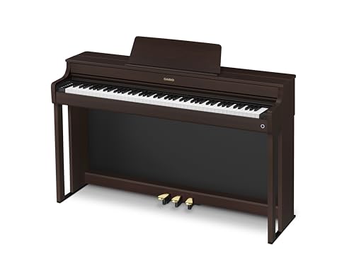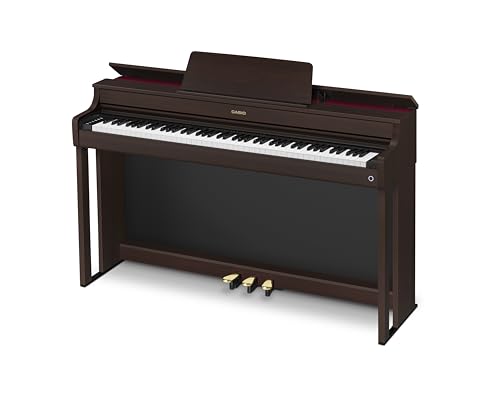 The CELVIANO AP-300’s new grand piano Tone has been painstakingly sourced from one of the finest pianos on Earth. Advanced and customizable features like damper resonance, sympathetic string resonance and adjustable mechanical sounds complete the experience of a full-size concert grand. A total of 19 essential keyboard Tones are included, with built-in DSP effects adding realism and atmosphere. And with no tuning or maintenance needed, your AP-300 will sound immaculate for years to come. The Perfect Touch From the first touch, the AP-300 distinguishes itself with its natural and responsive keys. The Smart Scaled Hammer Action keyboard goes beyond expectations, reproducing individual hammer behavior for each of its 88 keys, conveying even the most subtle nuances of your playing. With textured surfaces simulating vintage ebony and ivory keys, you’ll always feel confident as you play. Raise the Lid Reach out and raise the AP-300’s lid, and hear the full bloom of a concert grand. The beautiful tone you hear is thanks not only to the AP-300’s 40-watt speaker system, but by its thoughtful acoustic construction. The carefully-crafted reflective panels within the AP-300’s cabinetry produce the full sonic spectrum of a grand piano, even from beneath the keys. Design in Mind A grand piano tends to require a dedicated room, but with the AP-300, you only need a few feet. Created with families and small spaces in mind, the AP-300 condenses the essential sound, touch, and style of a grand piano into a beautifying and space-conscious addition to your home. Elevated Elegance The AP-3000 is a luxurious yet affordable addition to any space. With its handsome cabinetry, gentle curves, and thoughtful details such its reflective front panel and gold-trimmed soft-close key cover, the AP-300 lends traditional piano elegance in a fraction of both the space and cost of a full-size grand. It’s available in your choice of Black, White, and Rosewood finishes, and includes a matching height-adjustable padded bench. Controls On Demand Select Tones and adjust various settings with the illuminated touch sensor controls on the left-hand panel. The controls vanish as you play, providing a natural, distraction-free piano experience. Simply touch the panel to activate them again. Music to Your Ears A powerful 40-watt amplification system uses the AP-300’s cabinetry as a resonator to create a dynamic, rich and nuanced atmosphere for both the player and audience at any volume. Connect headphones to keep it all to yourself, with an automatic Headphone Mode accentuating bass levels at lower listening volumes. Expression at Every Step The AP-300’s generously-sized pedals are based closely on the design, stability, and operation of acoustic grand piano pedals. The two-level damper and soft pedals give you access to a wide palette of sonic textures, giving you the freedom to play your favorite pieces with authenticity. Create your space While listening through either the AP-300’s built-in speaker system or your favorite headphones, you can add depth and gravitas to your performance with selectable Hall Simulator and Surround effects. Choose your dream venue, then place yourself right in the center of your music. Untethered Entertainment The included Bluetooth MIDI & Audio Adapter turns the AP-300 into a room-filling Bluetooth speaker, but that’s just the beginning. You can connect wirelessly to an endless world of learning apps, and use the Casio Music Space app (free for iOS and Android devices) to control your piano, interact with sheet music, learn and play along with your favorite songs, and much more.