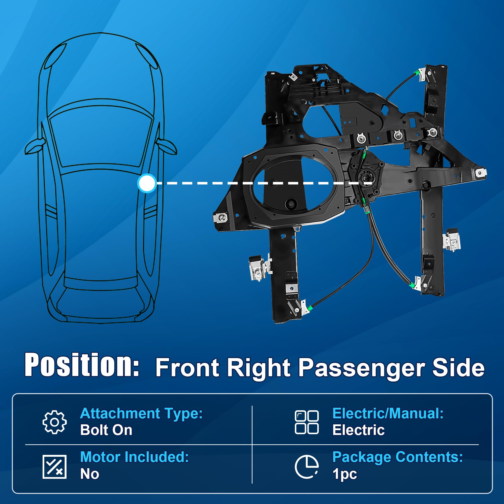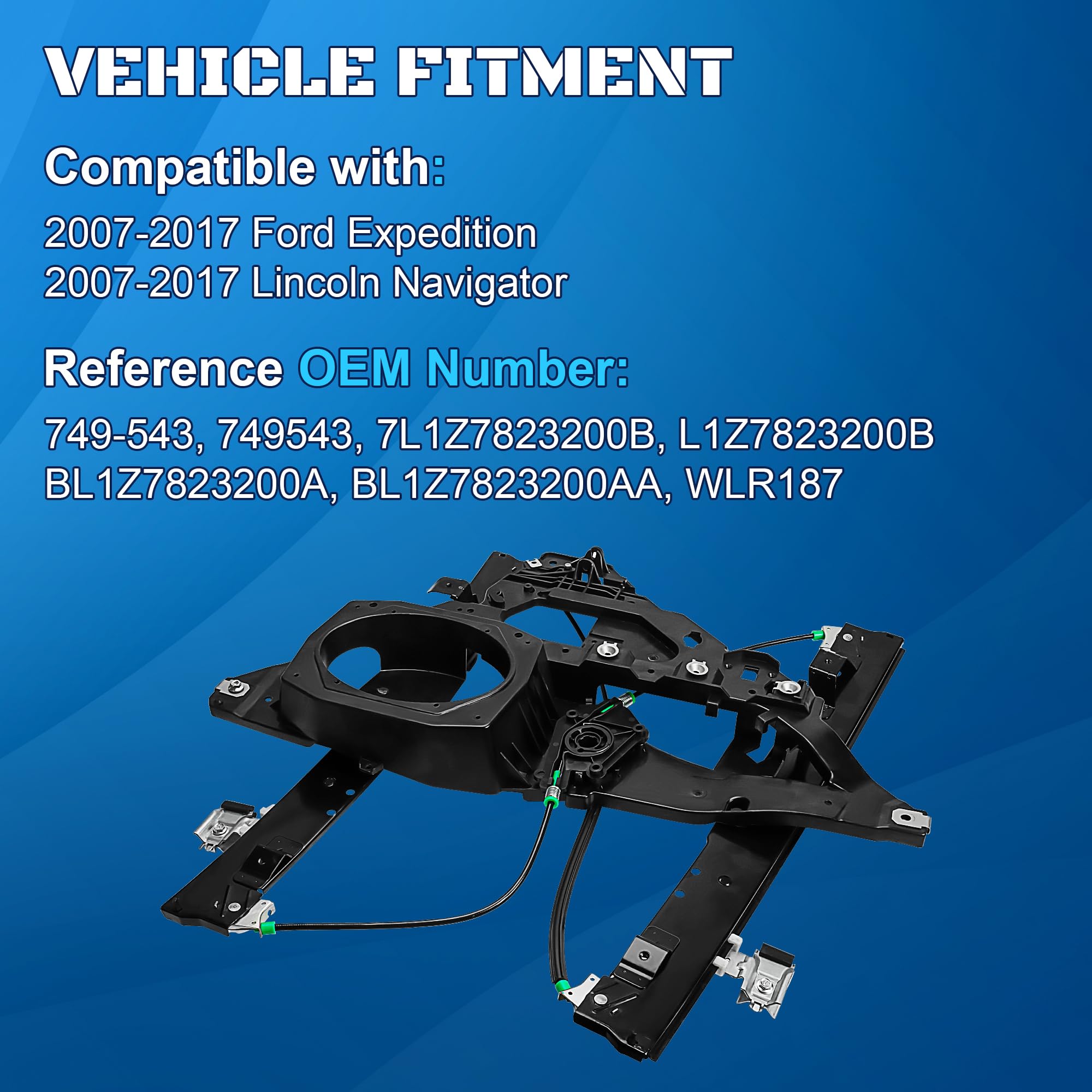 [Vehicle Fitment]: This front right power window motor and regulator assembly compatible with 2007 2008 2009 2010 2011 2012 2013 2014 2015 2016 2017 Ford Expedition Sport Utility, 2007-2017 Lincoln Navigator Sport Utility