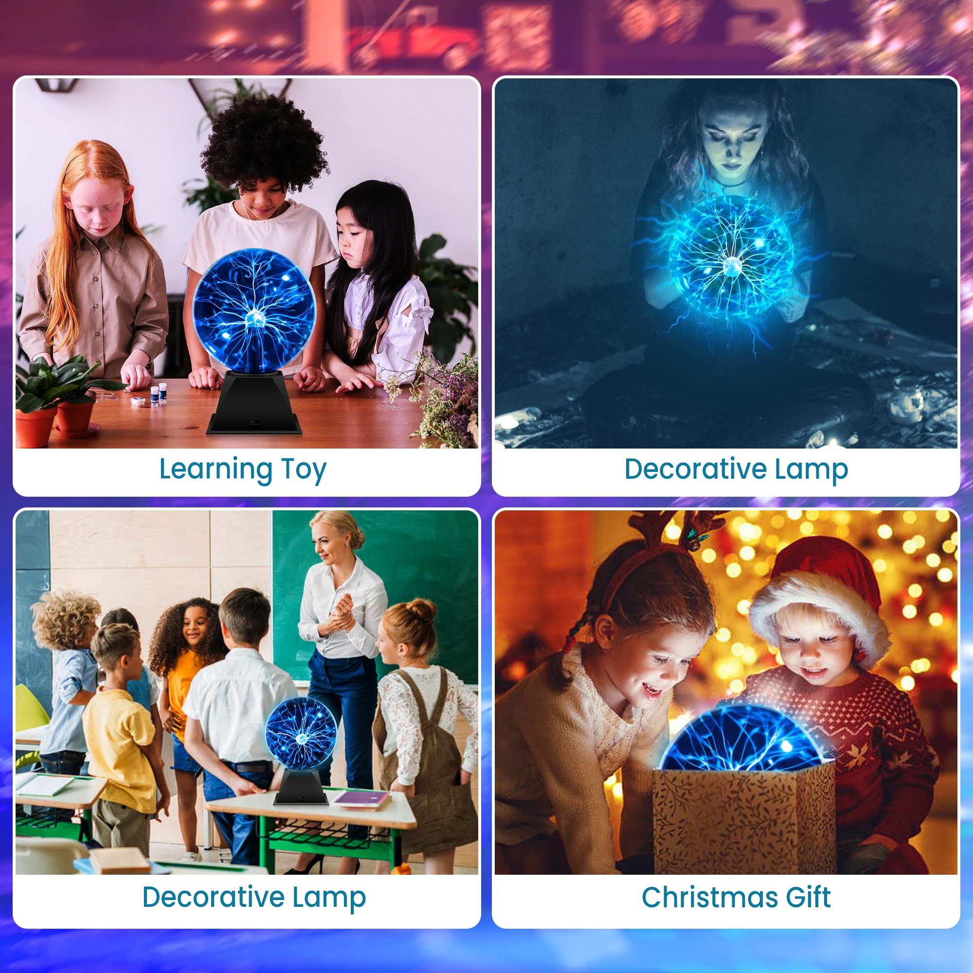 【🔮 Great Addition to Teen's Bedroom or Study】: This plasma ball is not only a toy, it can be also used as a decorative lamp in kids room. Bring the lightning into the transparent globe, touch sensitive, the lightning will follow the finger and move.