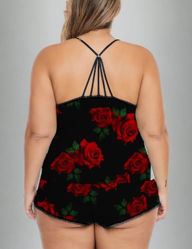 ❀ Material: Plus size cami shorts set is made of 95%Polyester+5%Spandex.Soft and stretchy fabric makes it breathable and comfortable.