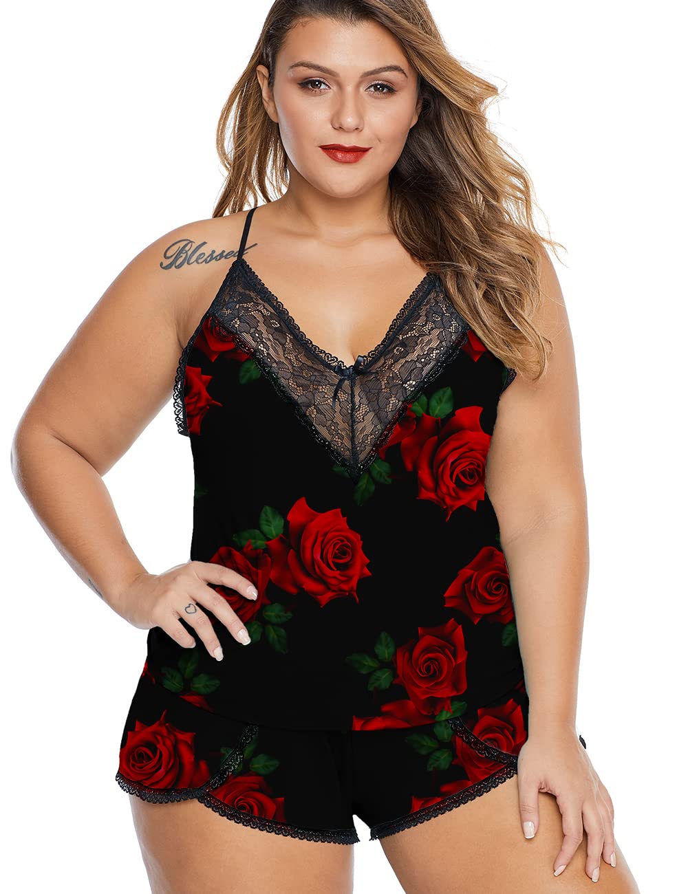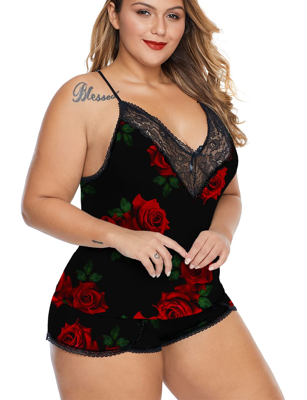 ❀ Occasion: This plus size women's pajama short sets are great for nightwear, sleepwear, boudoir, holiday and loungewear.