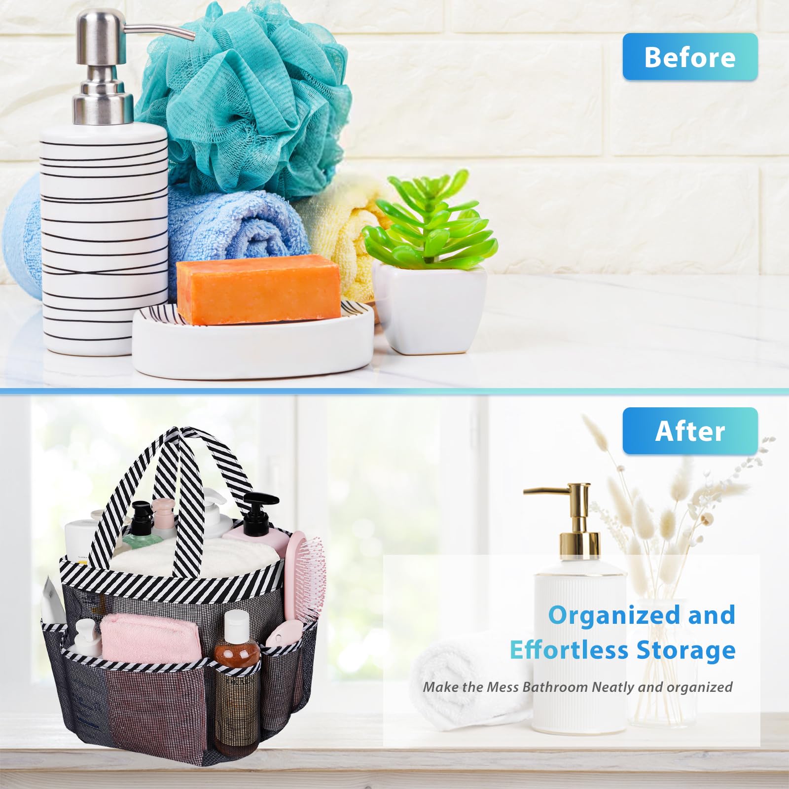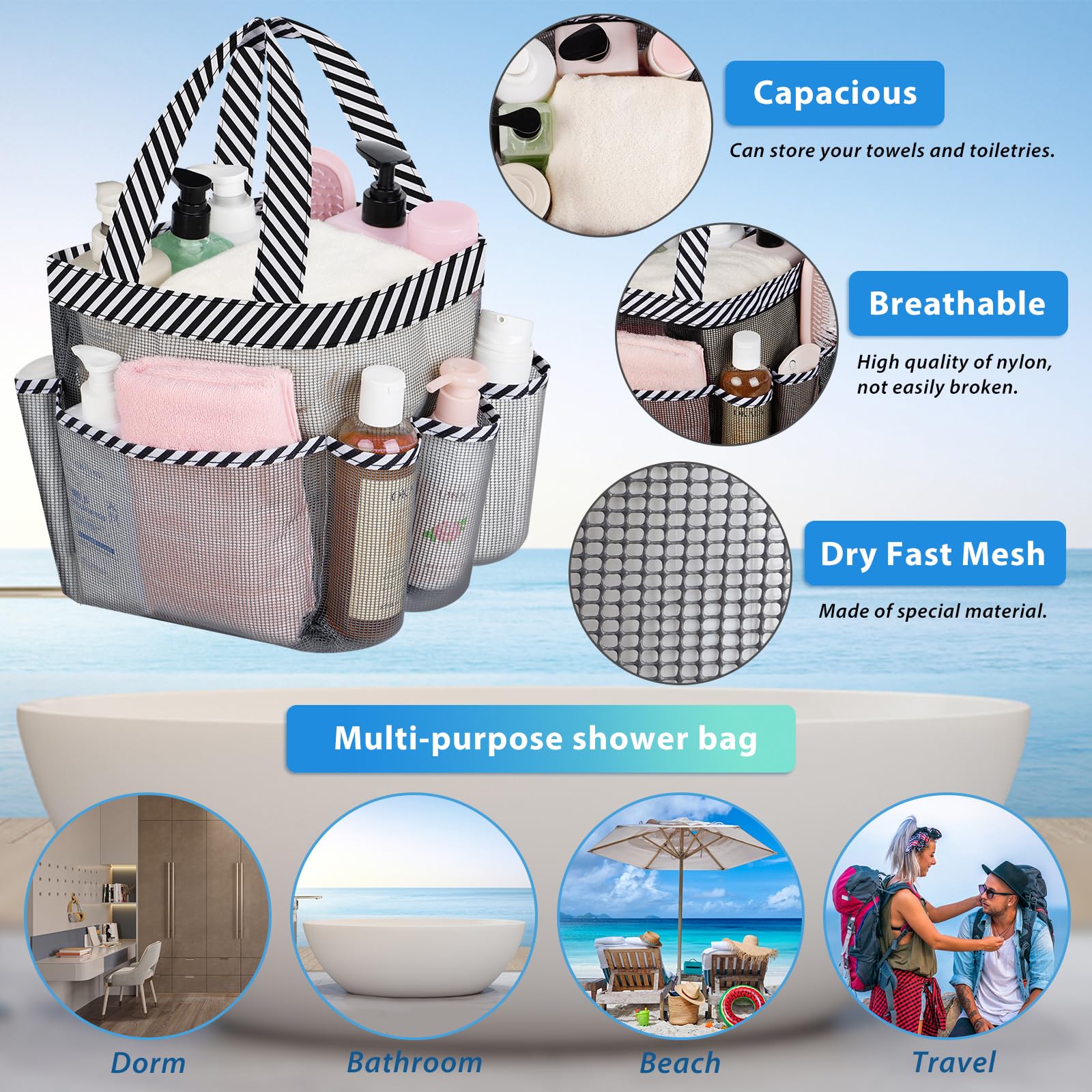 High Quality : The shower caddy portable is made of tough and sturdy mesh, the shower basket can holds many toiletries and doesn't tear, and the mesh at the bottom allows for quick water filtration and may keep the pocket upright