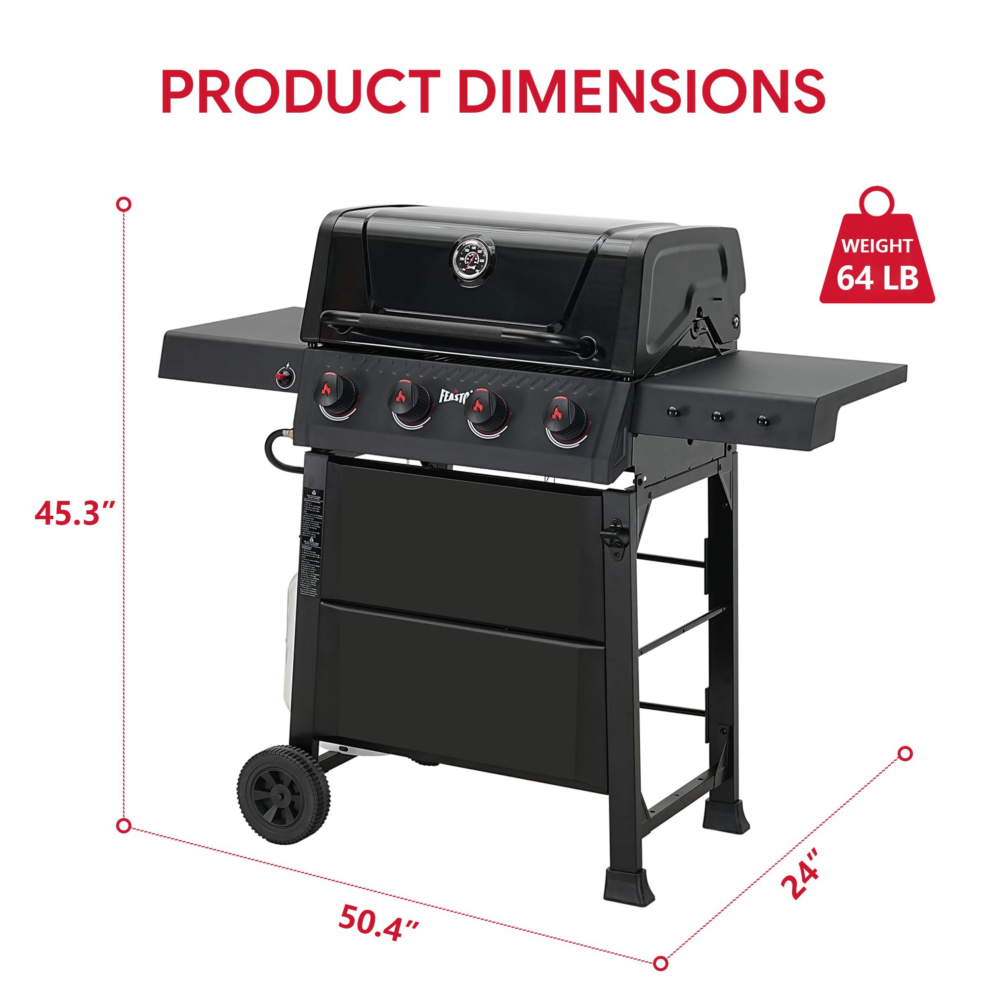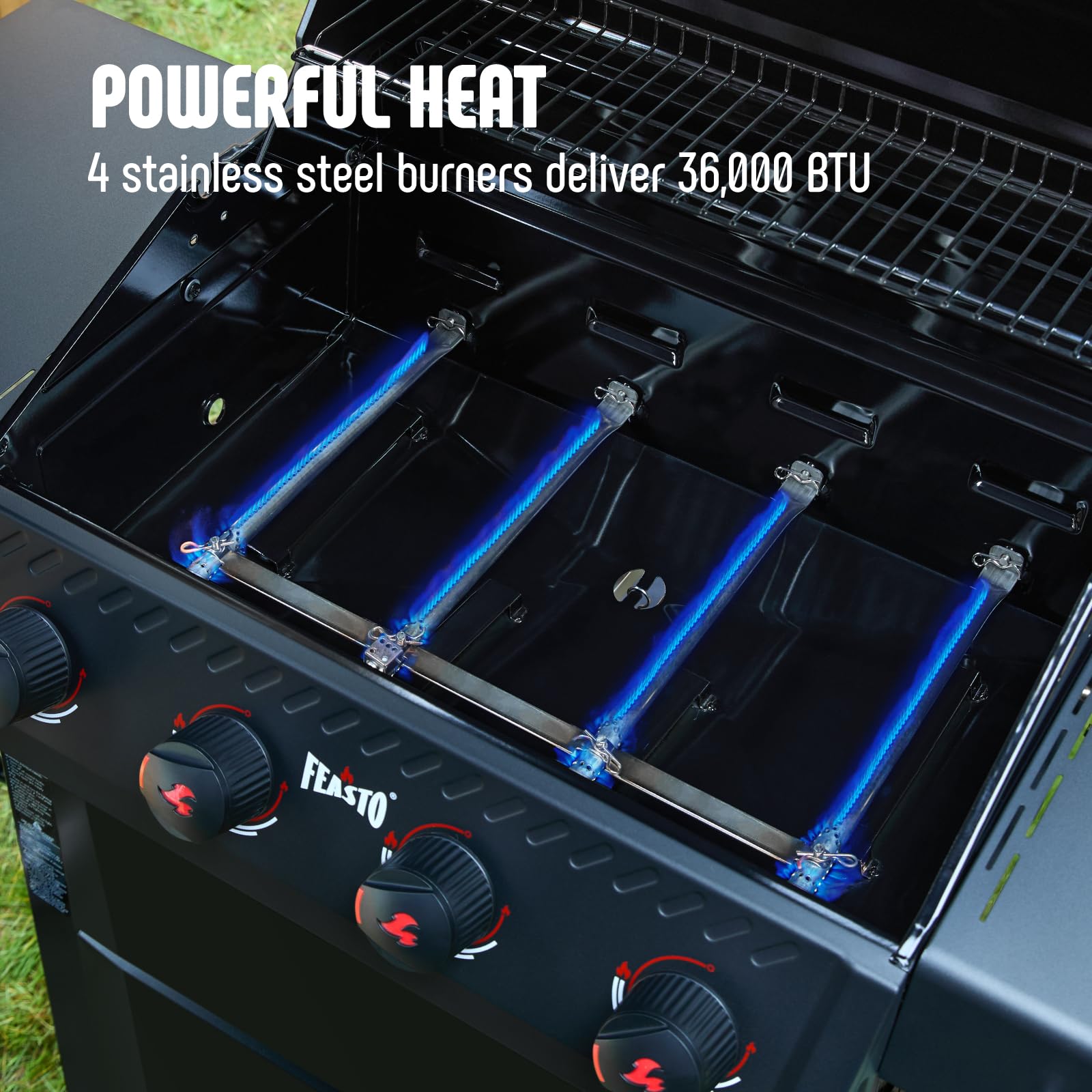 Stainless Steel Burner: The propane BBQ grill got 4 durable stainless steel burners with a total output of 36,000 BTU,ensuring long-lasting performance and even heat distribution
