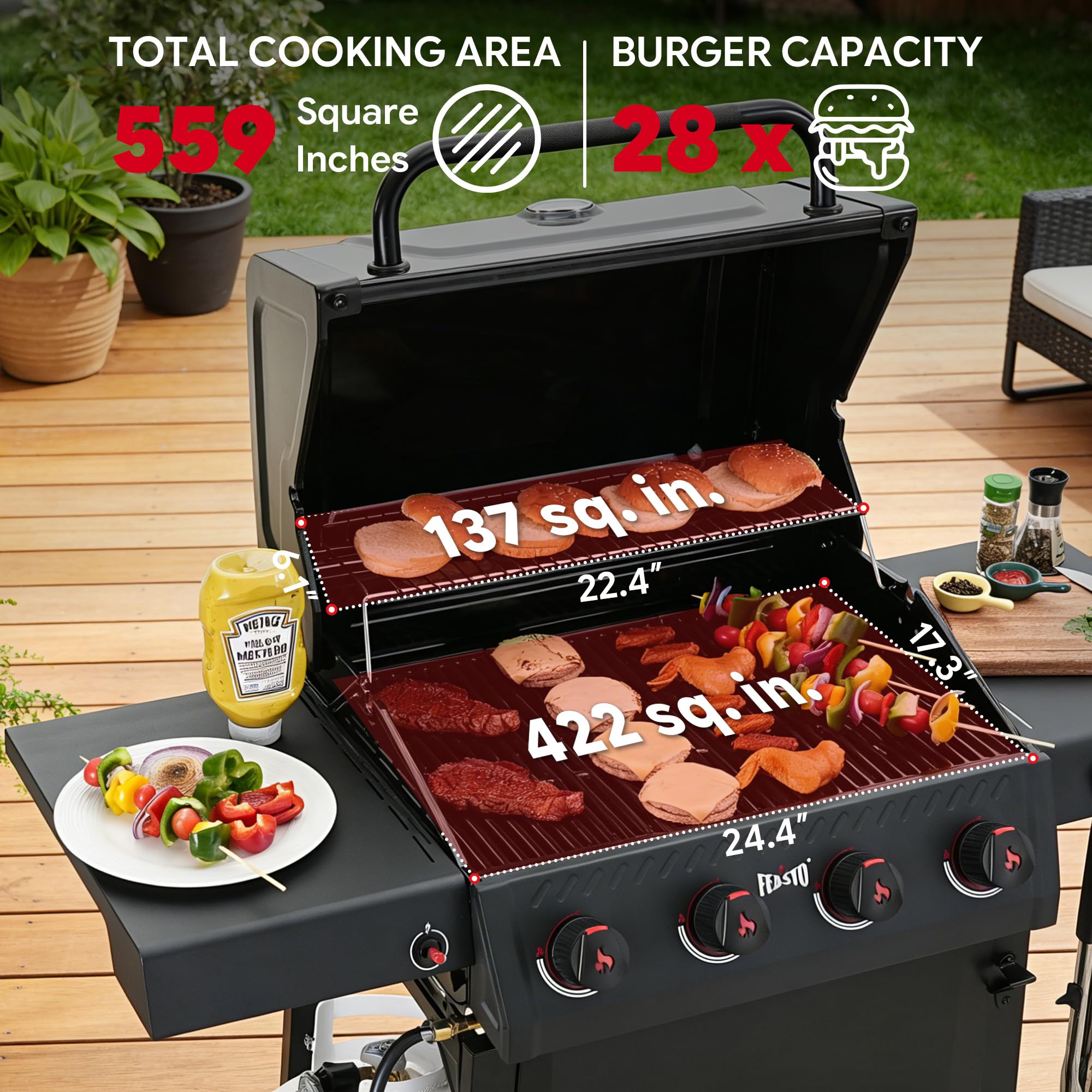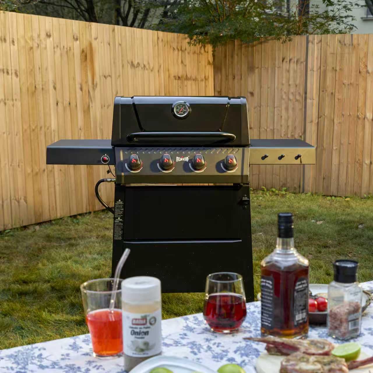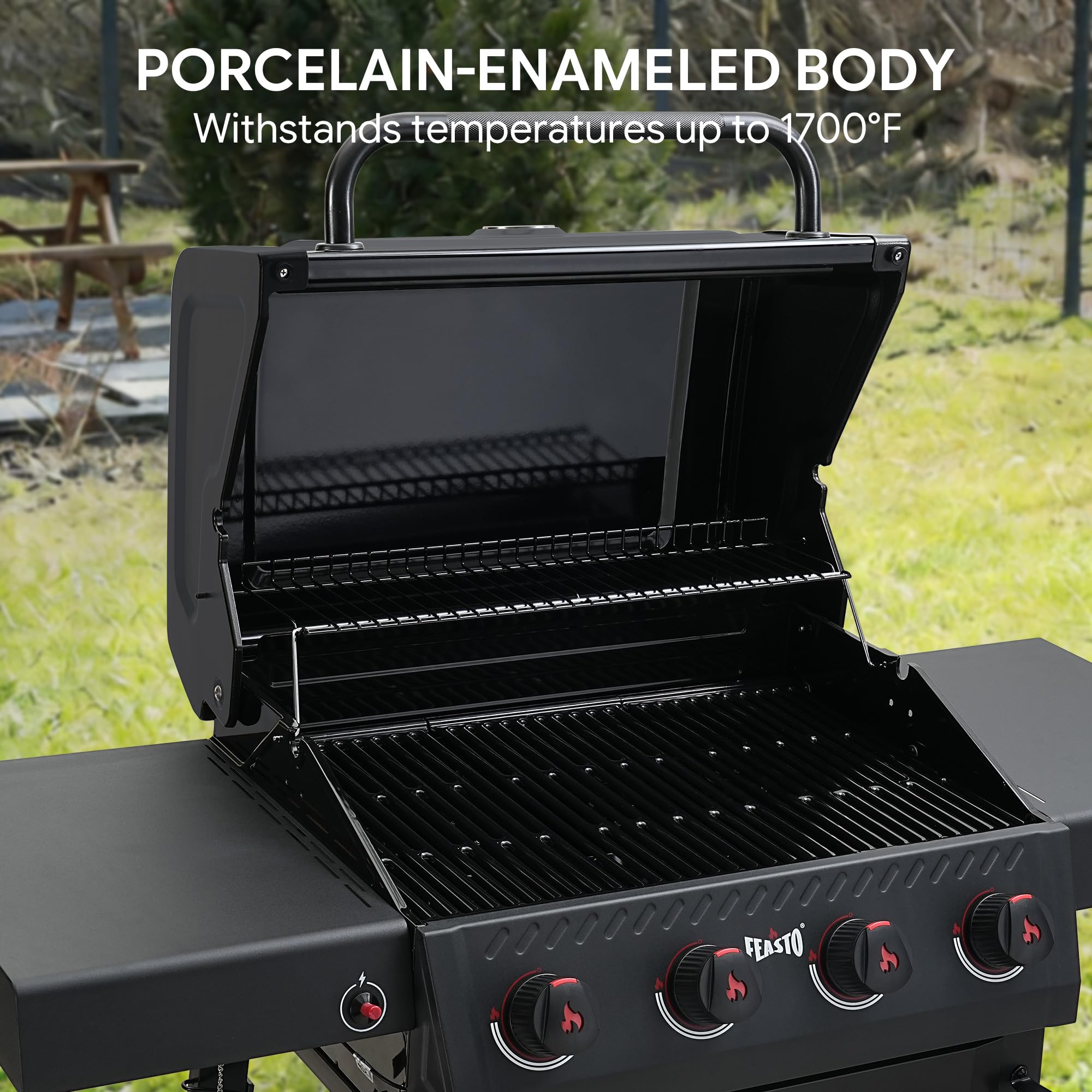 Porcelain Enamel Body: This outdoor propane grill got premium porcelain enameled stove body, which can withstand temperatures up to 1700°F, offering excellent heat retention. Also prevents surface peeling, enhancing the stove's durability and overall aesthetic appeal