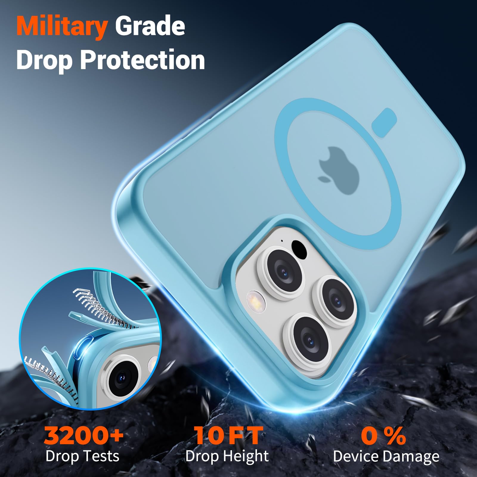 Shock Protection: Passing military drop tests up to 10 feet, your device is effectively protected from violent impacts and drops