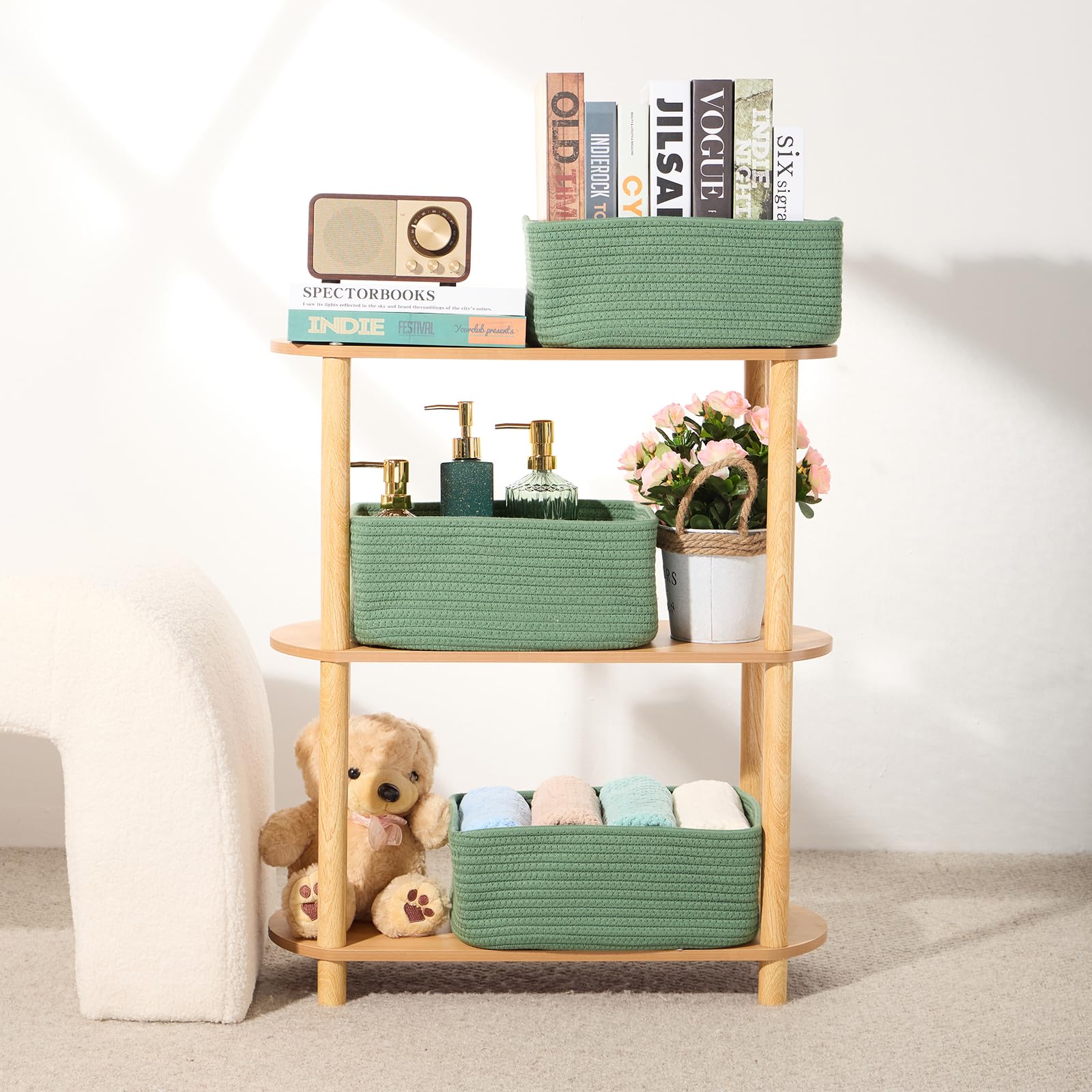 [ Compact Size ]: With dimensions of 13 × 8.5 × 5.1 inches, this rectangular basket is designed to accommodate most small household items. Each set of 3 pieces can be sorted to store cosmetics, jewelry, baby diapers, towels, remote controls, keys, credit cards, wallets, charging cables, toys, snacks, paper towels, and more