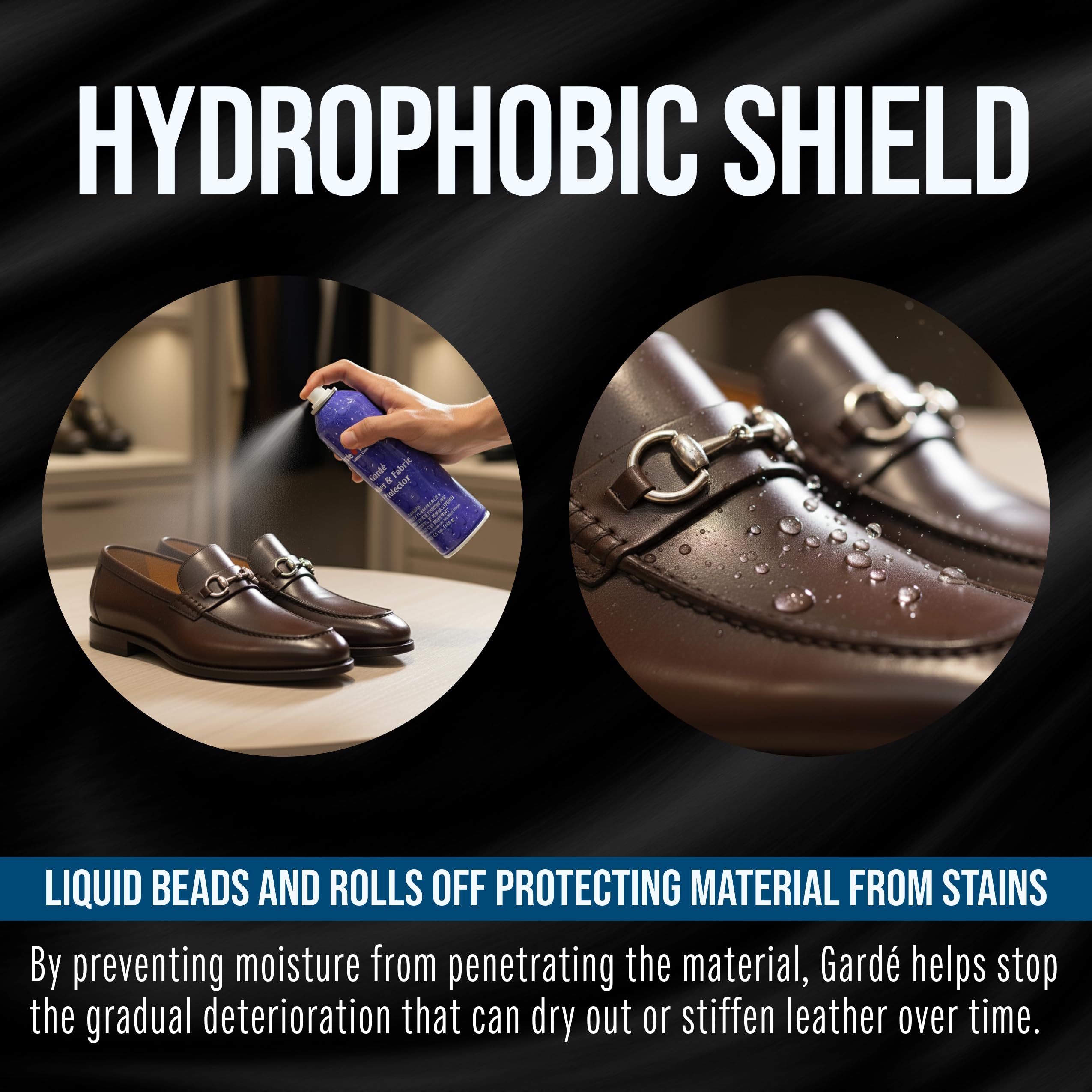 SAFE FROM RAIN & STAINS: Garde will make sure that your handbag and shoes are safe if you get caught in the rain. By forming an invisible protective layer, Garde keeps your products free from water spots, salt stains, body oil, grease, perspiration, coffee, wine, and any other dangers to your leather goods.