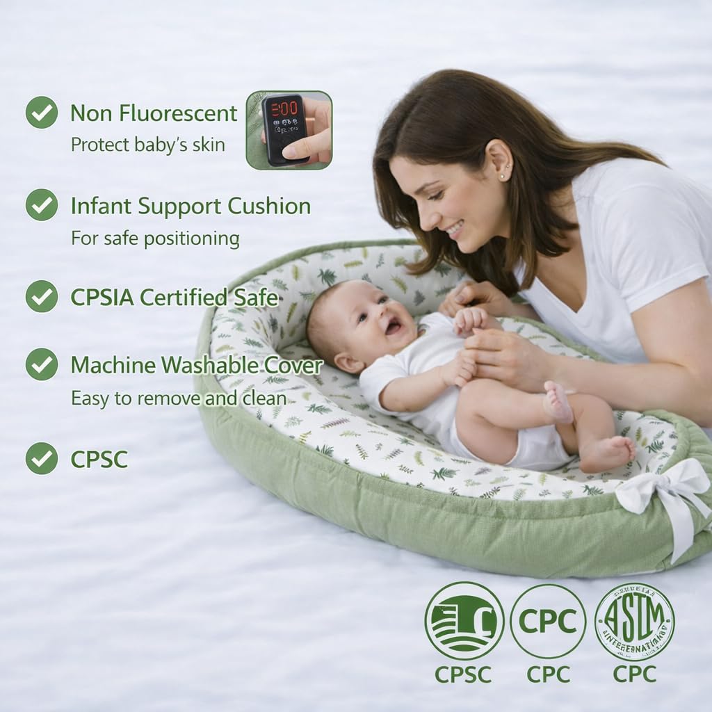 Lightweight & Travel-Friendly – Compact and portable with convenient carry handles, this baby nest is easy to take with you wherever you go—great for around the house or weekend visits to family.