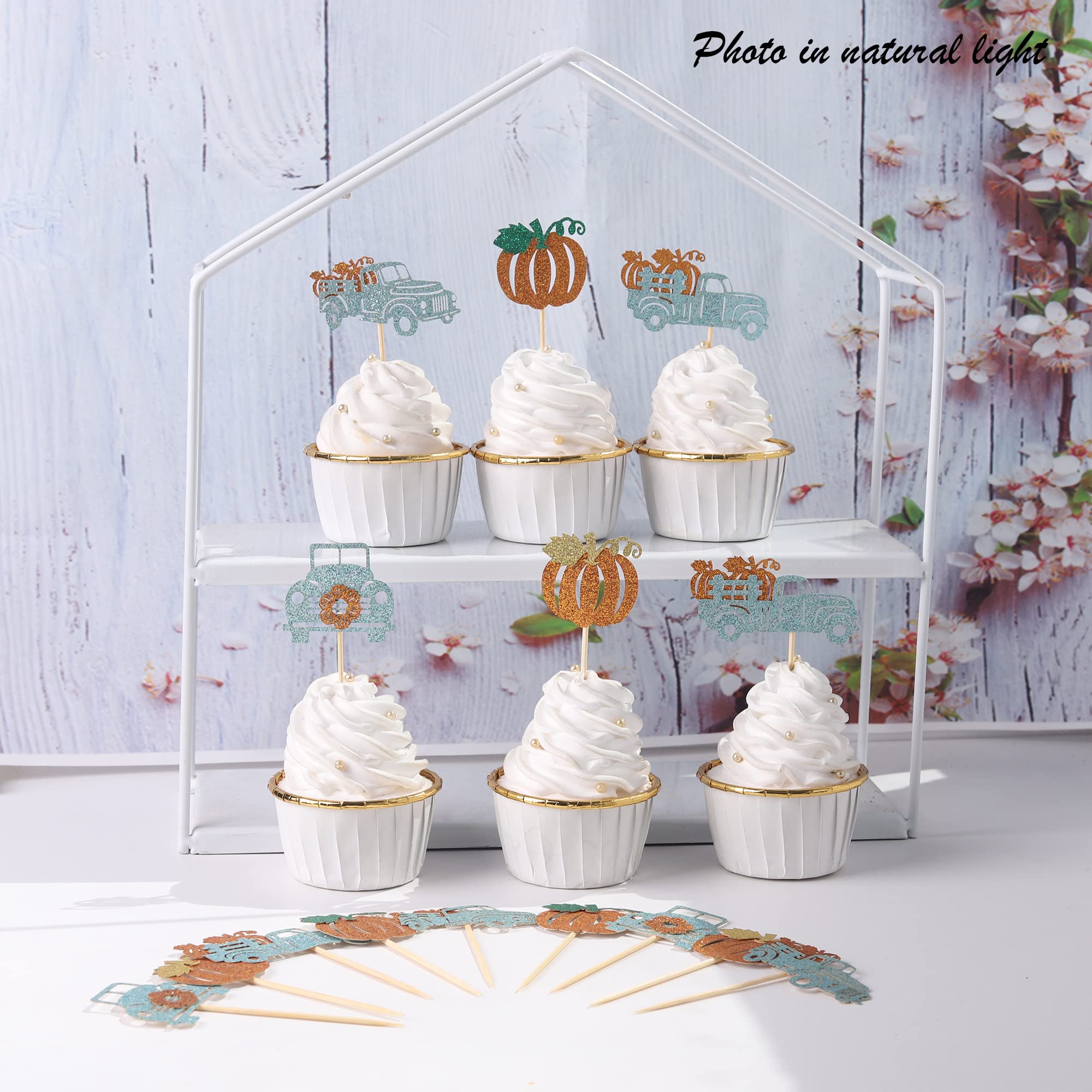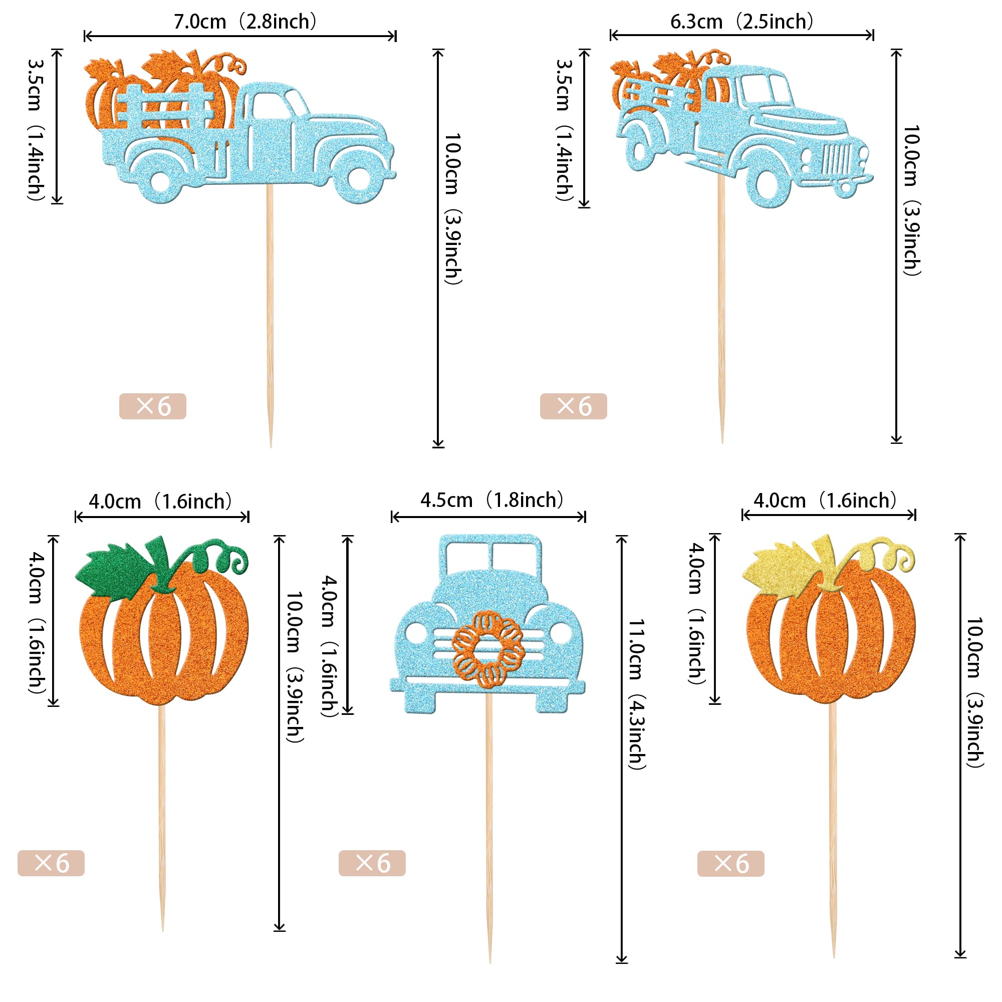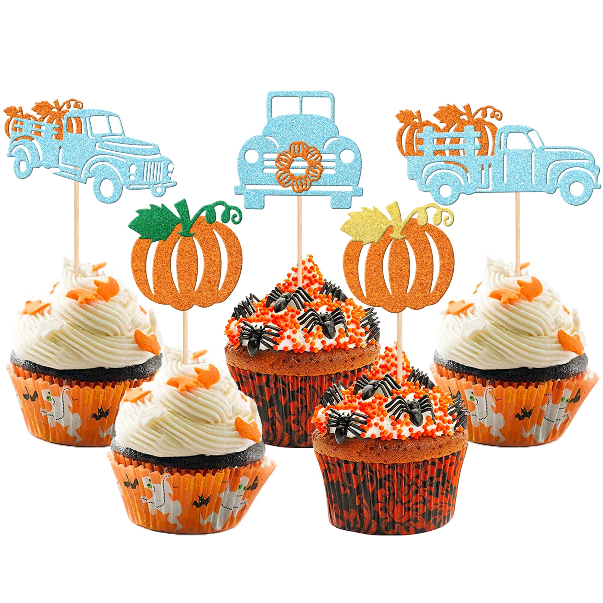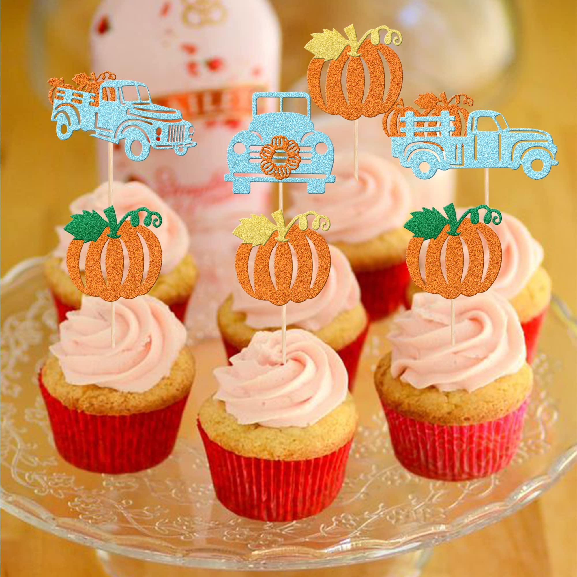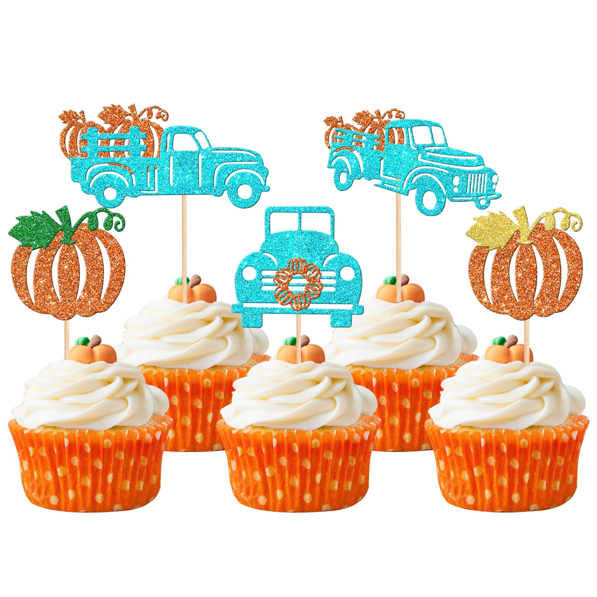 Truck Pumpkin Fall Harvest Thanksgiving Theme Baby Shower Wedding Birthday Party Cupcake Decorations Supplies Perfect for truck pumpkin theme party, fall harvest theme party, thanksgiving day theme party, wedding theme party, baby shower theme party,kids birthday theme party cupcake decorations supplies. Pack of 30 pcs,6 pcs each of the words little pumpkin and pumpkin. The size is 2.8*3.9 inch/2.5*3.9 inch/1.6*3.9 inch/1.8*4.3 inch/1.6*3.9 inch ( with stick ) Made of high quality paper card stock and food grade sticks,thick and thick and sturdy. These cupcake toppers are single glitter, the back is white, and they are intended for decoration only, please do not put them in oven or microwave. If the item you received has any defects, please contact us for refund.we will deal with it within 24 hours.