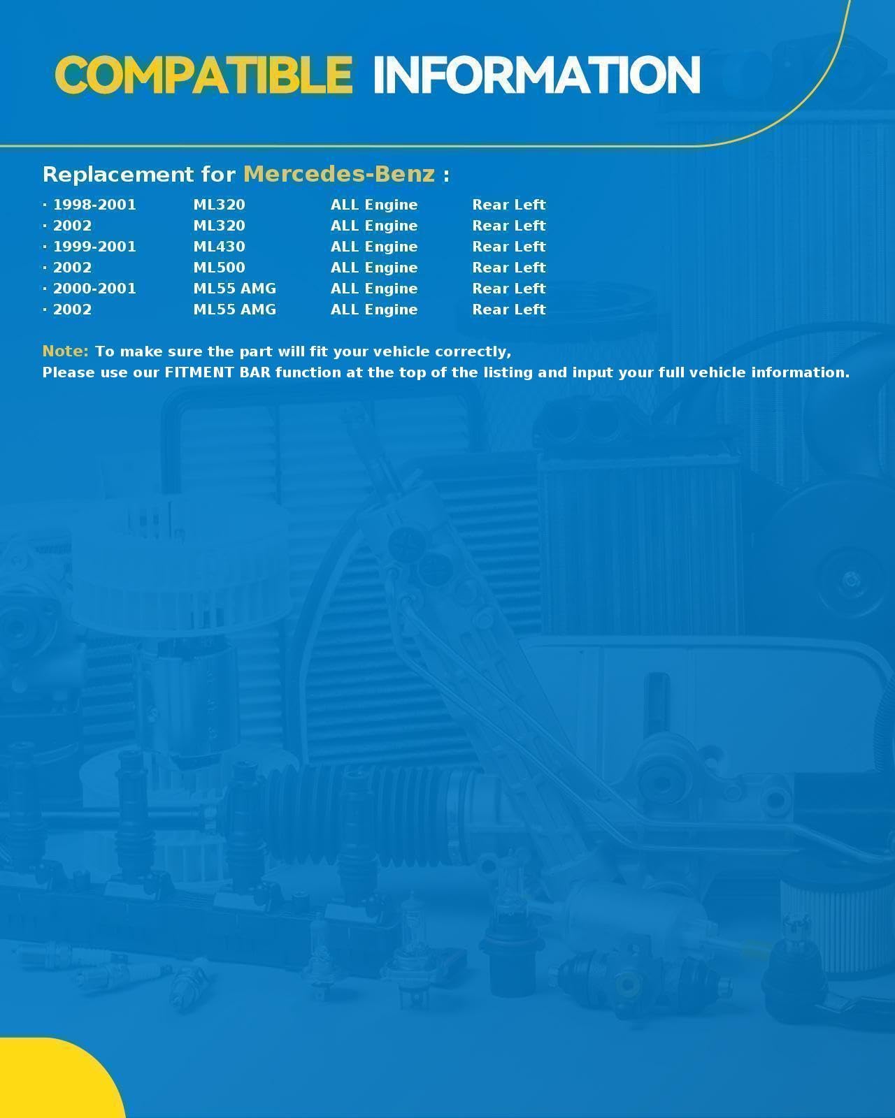 Vehicle Fitment:Window Regulator and Motor Assembly compatible with Mercedes-Benz 1998-2001 ML320 1999-2001 ML430 2000-2001 ML55 AMG 2002 ML320/ML500/ML55 AMG(To VIN A293637).Please MATCH your vehicle on the left top before purchasing