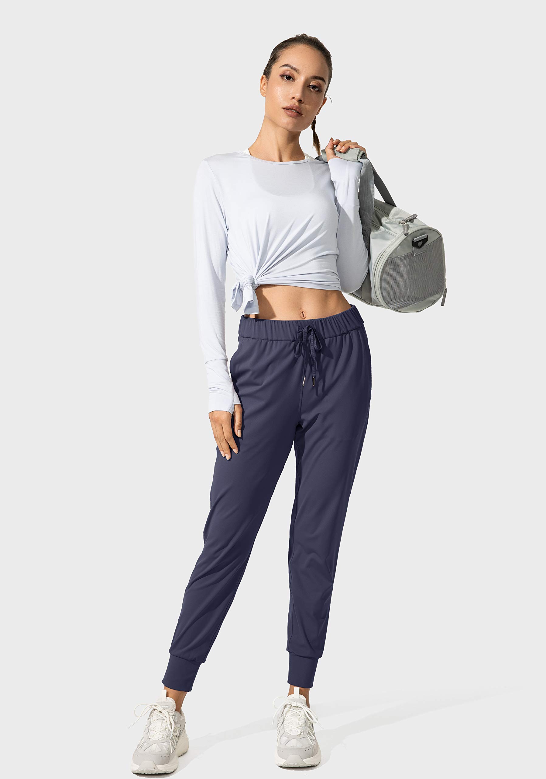 Fabric: 75% Polyamide/25% Elastane. Santiny womens joggers pants made of Soft,comfortable and four-way stretch fabric provide you with maximum comfort,support and coverage in your workout.
