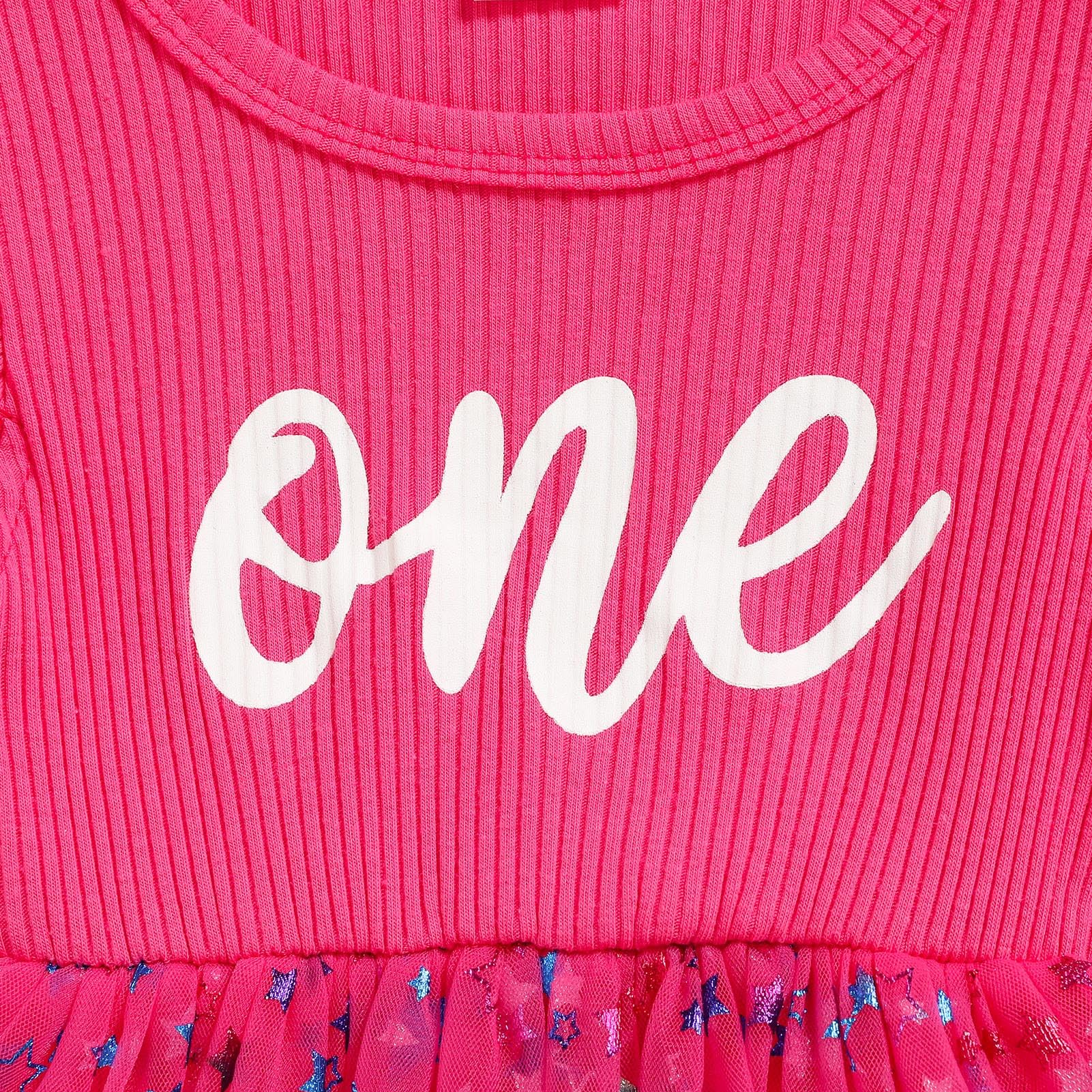 🎀 1ST BIRTHDAY ROMPER - "One" letters and lovely strawberry / butterfly / donuts print romper, three snaps for easily diaper changing, candy colors cake smash outfits, ruffle ribbed tulle one-piece clothes for your little girl's first birthday.