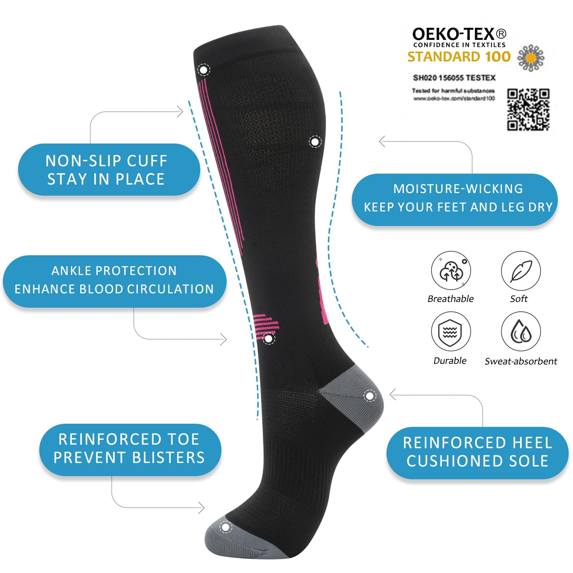 SUITABLE FOR VARIOUS OCCASIONS Support compression socks are suitable for a variety of people, whether you are nurses, runners, joggers, pregnant women, office workers, airplane travelers, or on other occasions, They can promote blood circulation and reduce pain. It is an indispensable part of your life