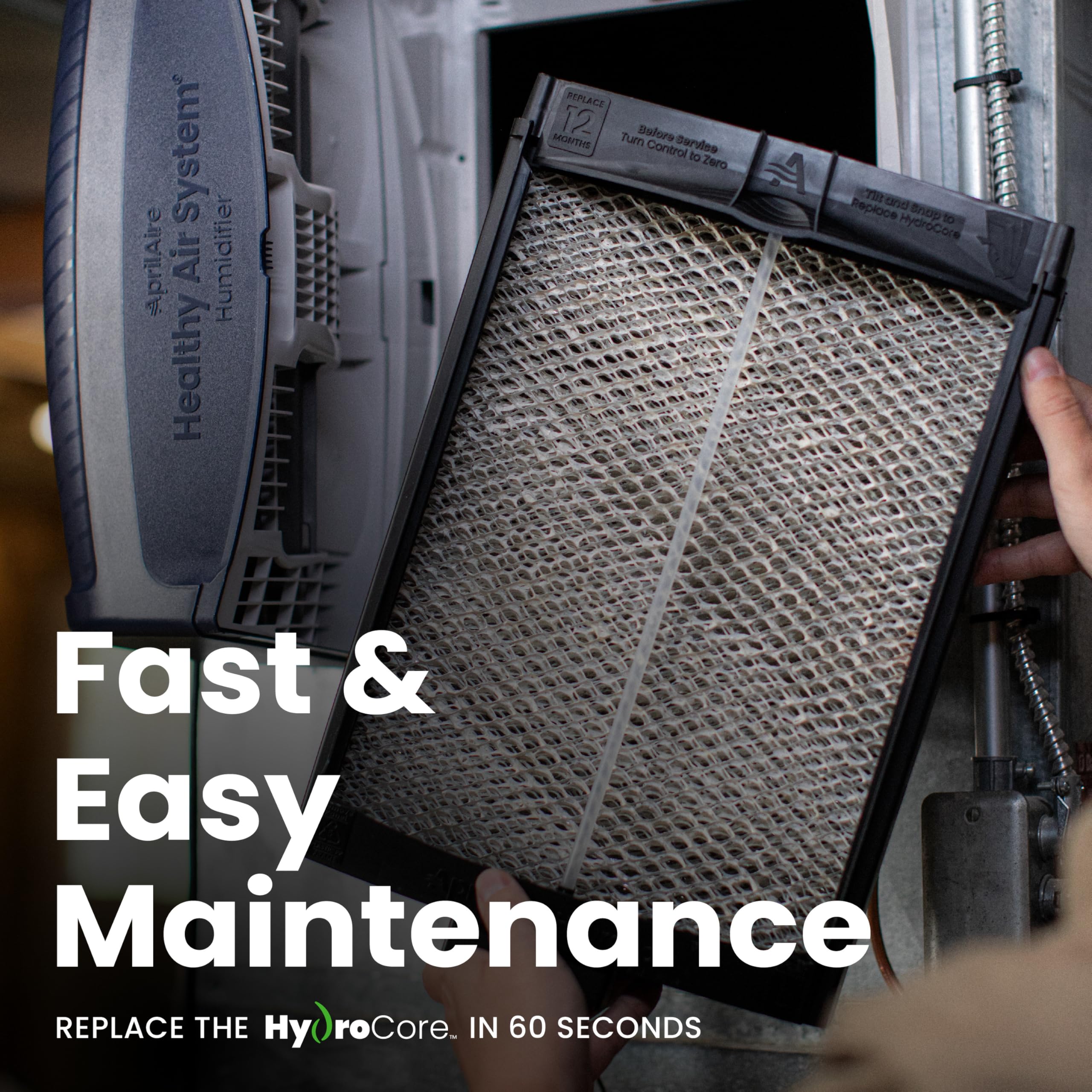 FOR OPTIMAL PERFORMANCE – Replace the HydroCore every 12 months to ensure the performance and longevity of your AprilAire 620 or 720 Humidifier