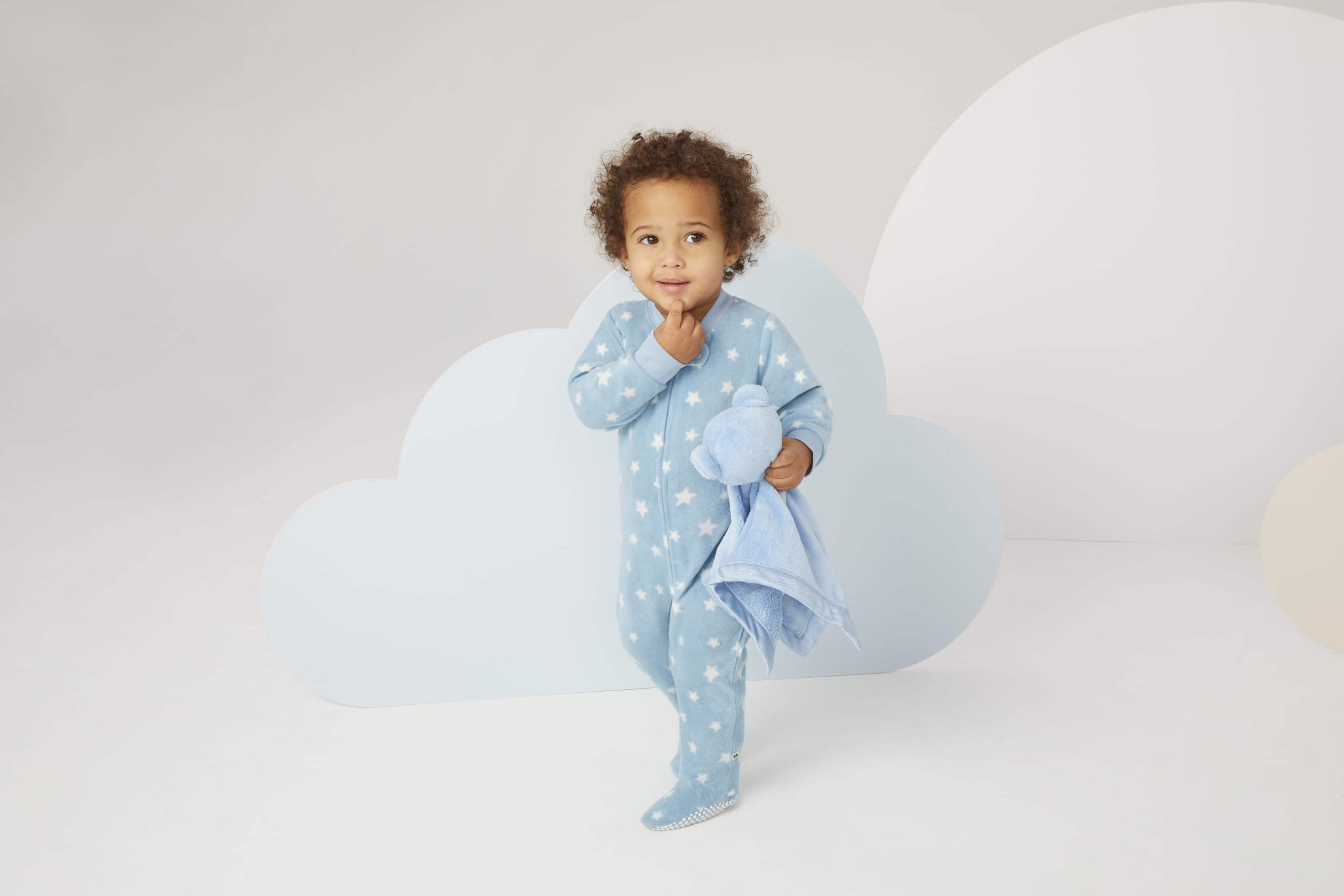Description Designed by the baby experts at Huggies, this 3-pack of sleep coveralls are made of breathable, soft-knit fabrics so you can sleep in style, baby! The two-way zipper makes late-night diaper changes a breeze, and a super comfy snap guard gives your child a cozy, secure fit. Elasticized, footed bottoms keep tiny toes warm all night, and silicone grips give your toddler an extra boost when they are on the move. With three adorable prints to choose from, this 3-pack wraps littles in comfort and cuteness!