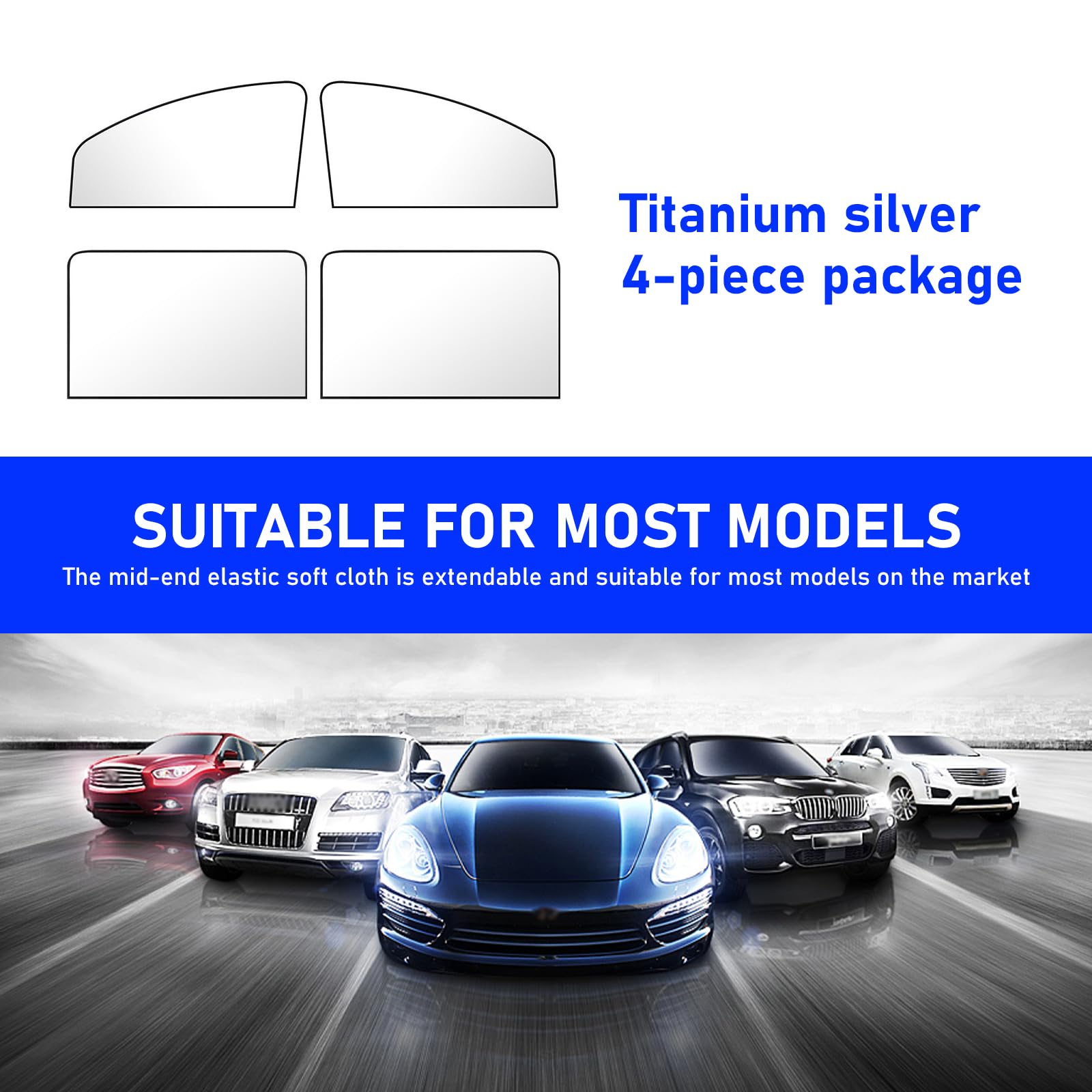 【Flygun 4-Piece Car Side Window Sun Shade – Comprehensive Protection for In-Car Comfort and Safety】 This Flygun car side window sun shade set comes in a practical 4-piece combination, with sizes tailored for front and rear windows to deliver meticulous sun protection and heat insulation. The front window sun shades measure 31.49 inches × 19.68 inches × 7.87 inches, designed to fit the curvature of front windows precisely. They effectively block direct sunlight, preventing the dashboard and steering wheel from aging or cracking due to prolonged exposure to intense heat. Additionally, they reduce glare from ultraviolet rays that may interfere with visibility while driving, enhancing overall road safety. For the rear windows, the sun shades are sized at 31.49 inches × 19.68 inches, focusing on blocking external heat from seeping into the car. Even on scorching summer days, rear passengers can stay cool and comfortable – a perfect choice for families with elderly members, children, or pets. Boasting a sleek titanium silver finish, these sun shades not only look modern and stylish, complementing various car interiors, but also feature high-quality breathable gauze material. This ensures efficient sun blocking while maintaining air circulation, preventing stuffy odors from building up inside the car. With a universal design, they fit most vehicle models and require no complicated installation. When not in use, they can be easily folded and stored in door compartments or the trunk, taking up minimal space. Whether for daily commutes or long road trips, this sun shade set is a practical essential to elevate your in-car comfort, keeping your vehicle cool and protected wherever you go.