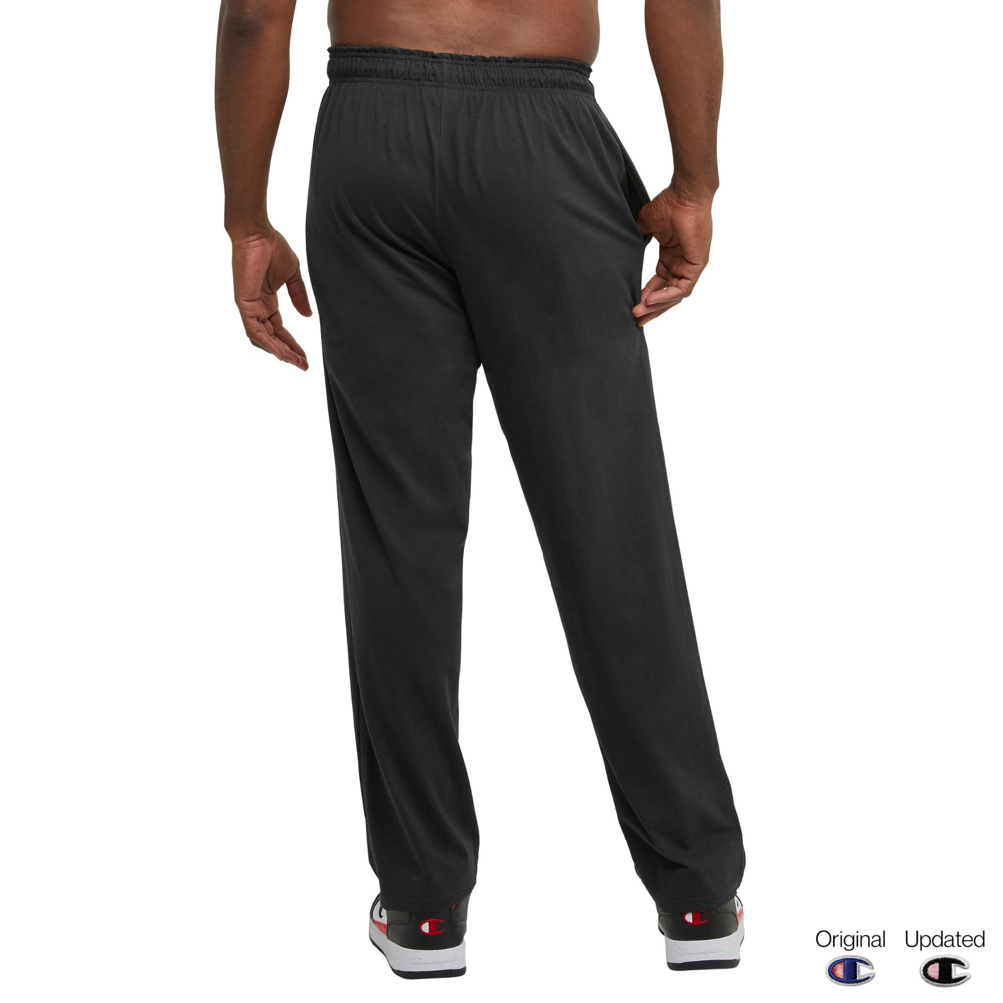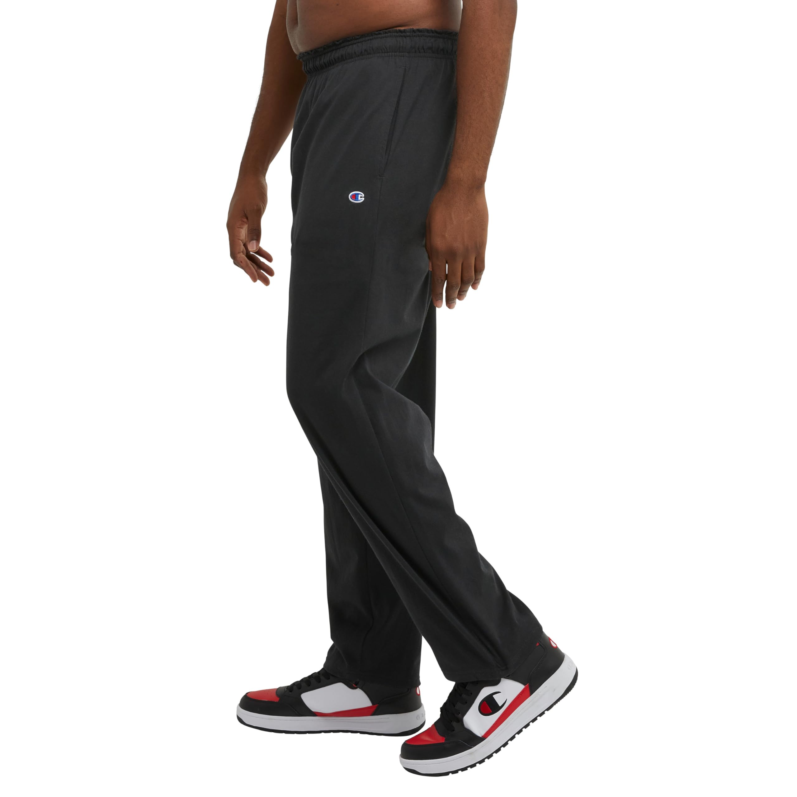 Description CLASSIC CHAMPION STYLE. These menβs open-hem lounge pants deliver ultimate lightweight comfort and are as soft as your favorite jersey knit t-shirt. Made for everyday at-home wear, their minimalist design features a stretch waistband with drawcord closure for a customizable fit. Convenient side pockets are the perfect place to store your phone, wallet, and more, while the open hem completes the laid-back look. These menβs lounge pants are finished with a Champion C logo patch at the left hip and are ready to be paired with your favorite tee or hoodie for an effortlessly cool 'fit.