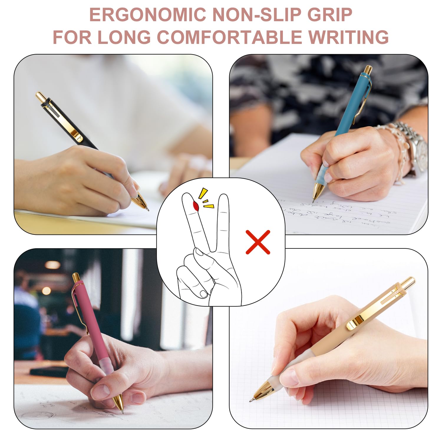 Linbsunne Ballpoint Pens Black Medium Point 1mm Pen with Super Soft Grip Ball Point Pen for Men Women Retractable Pens (gold-12 pcs)