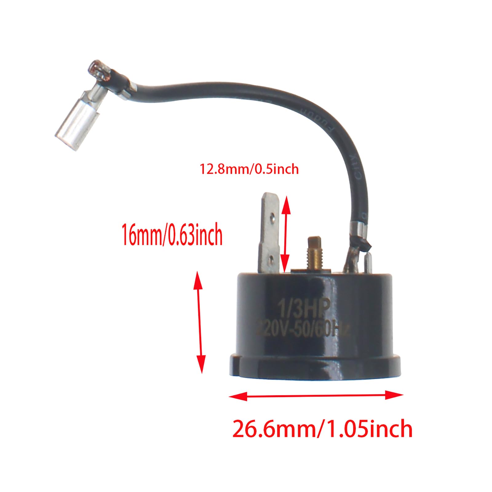 Size: Compressor protector diameter: 26mm / 1". Height: 16mm / 0.6". Compatible power: 250W.