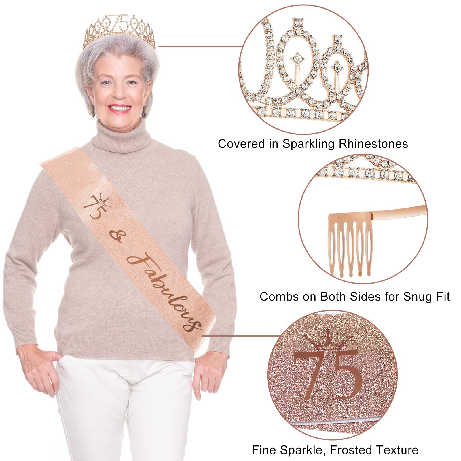 Happy 75th birthday decorations kit: The sparkling design of 75th birthday crown and sash suits women of all body shapes, makes the seventy-five birthday protagonist shine in the party