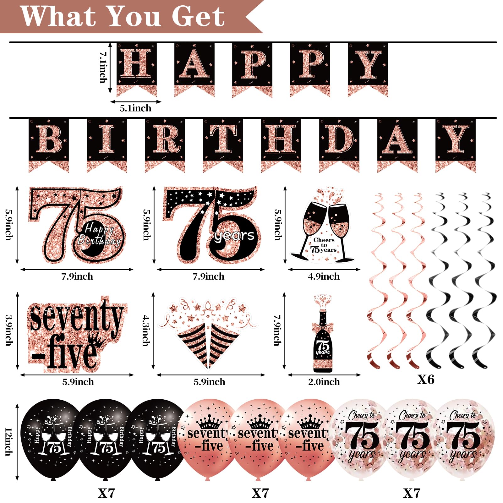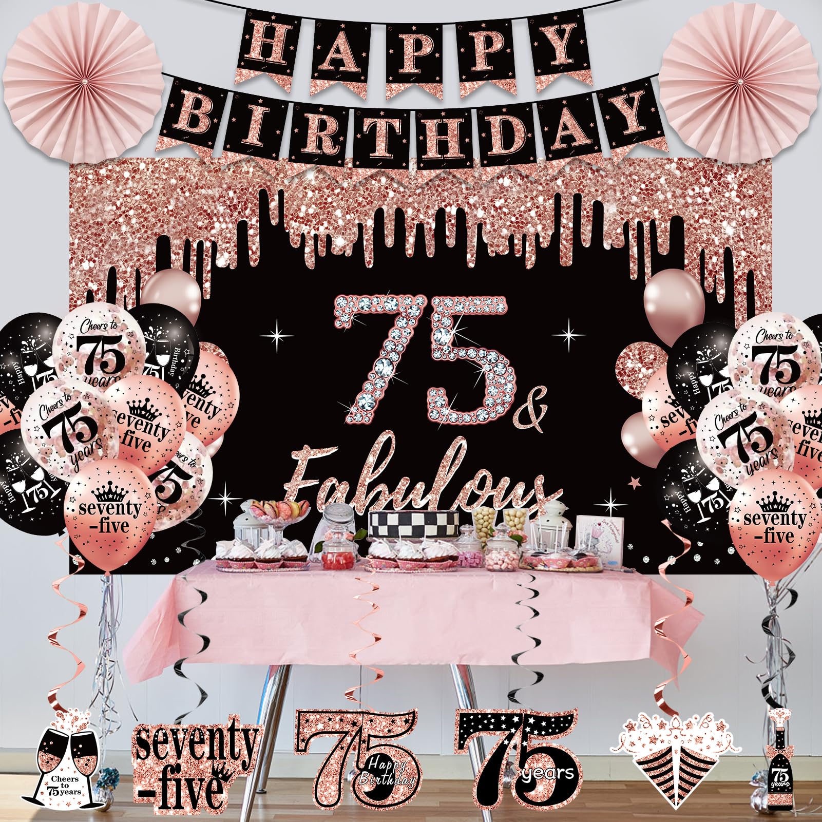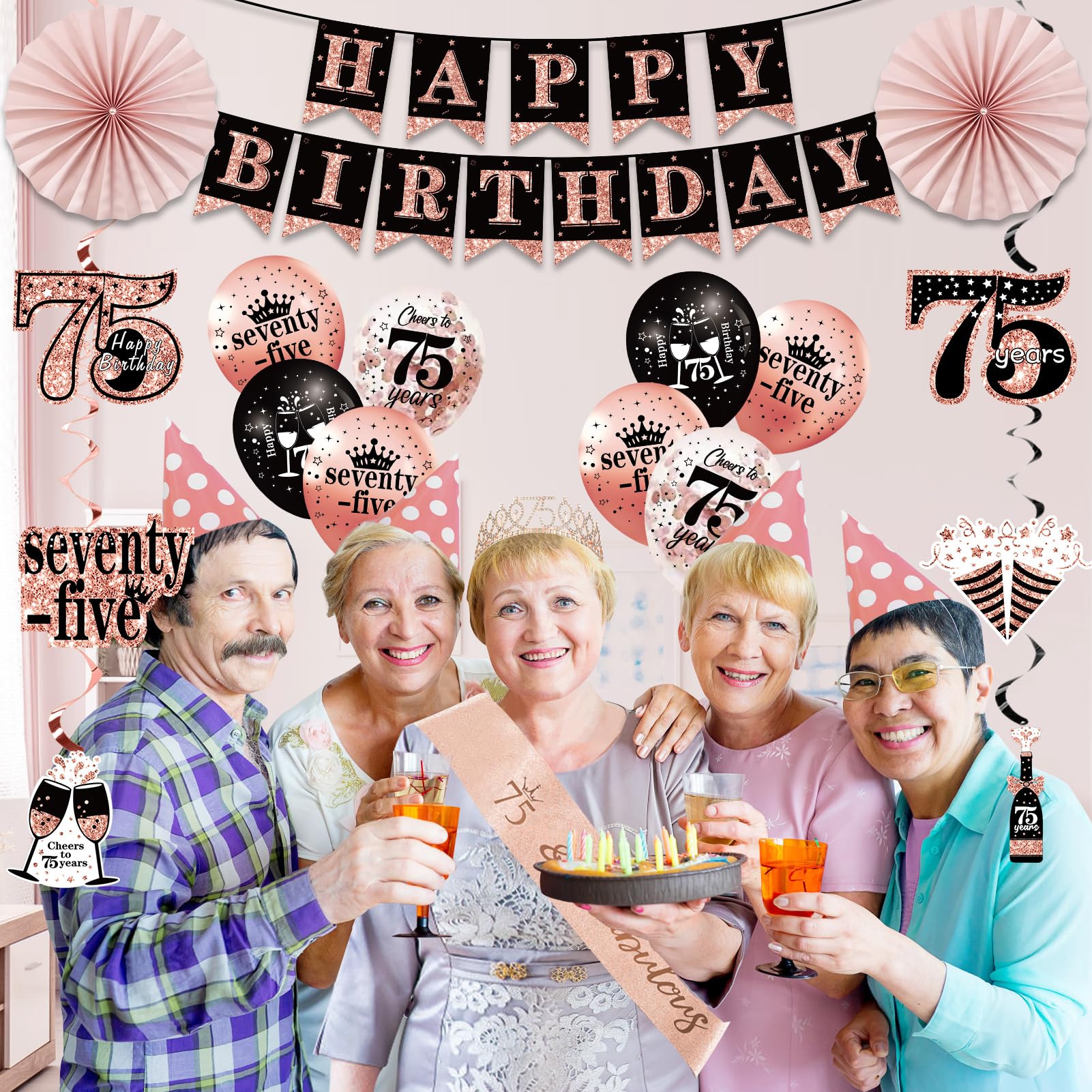 Rose gold 75th birthday decorations: Create a warm and elegant atmosphere with our womens 75th birthday party decorations. Cheers to 75 years