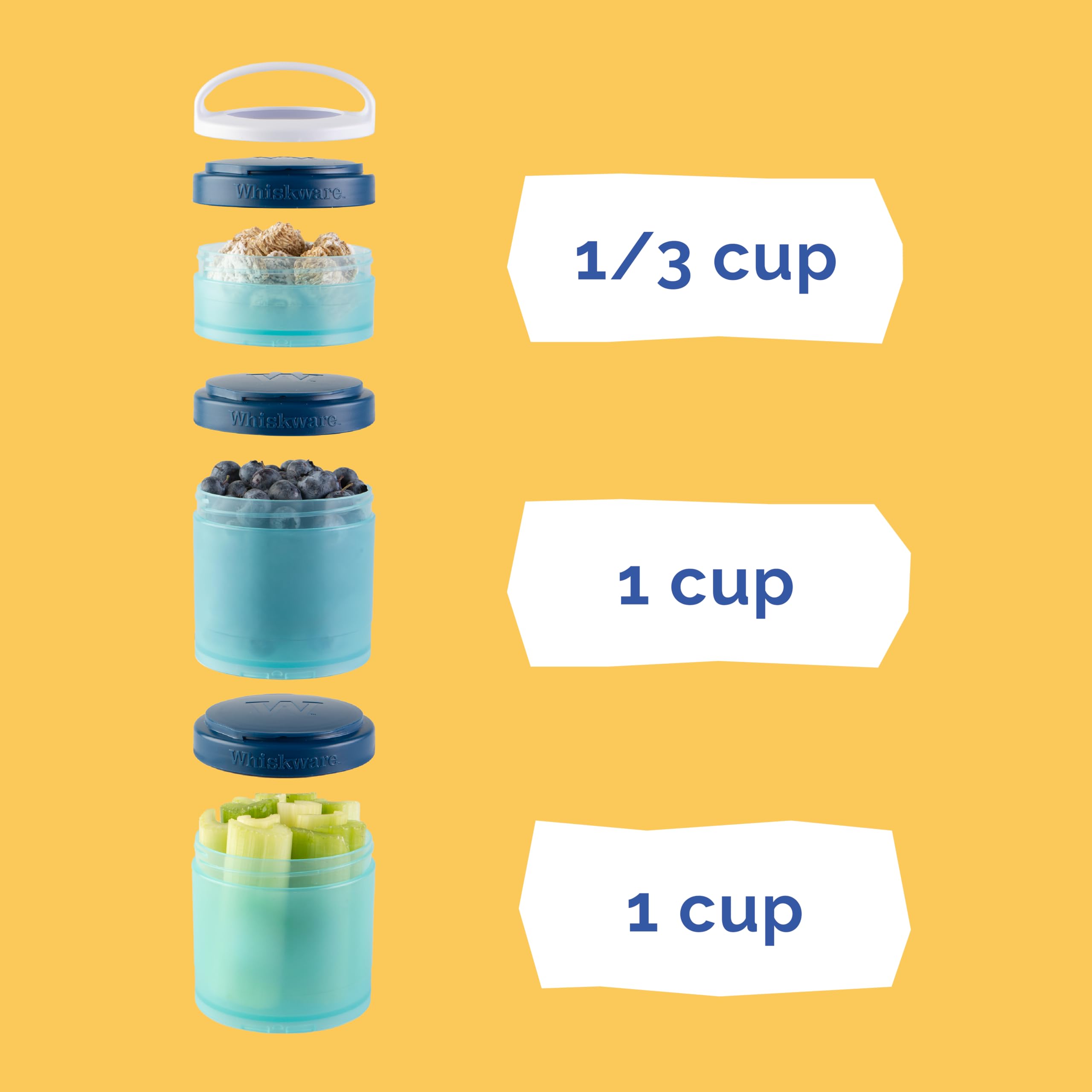Includes 3, cupholder friendly jars, measuring 1/3 cup, 1 cup, and 1 cup, BPA and phthalate-free for safety; dishwasher and freezer safe for convenience