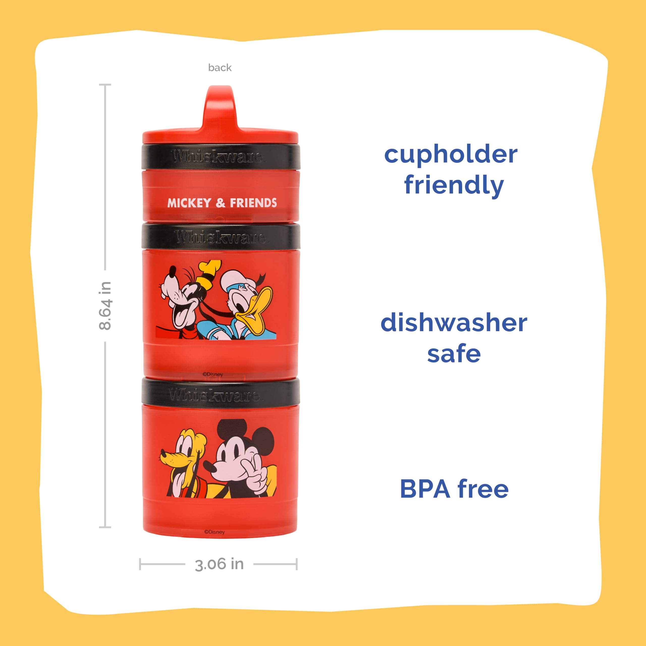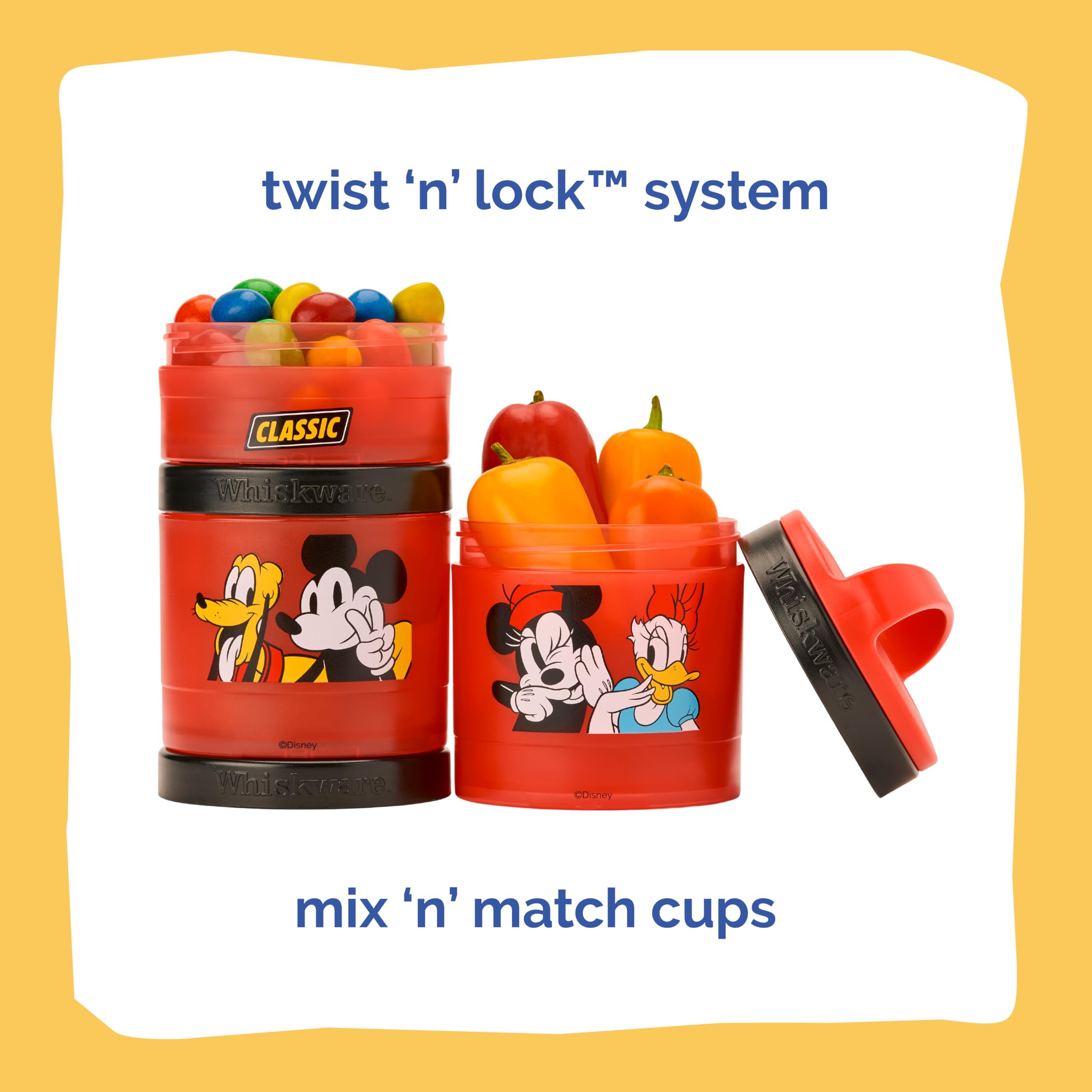 Here to turn snack time into playtime. Whiskware’s durable, low-mess snack jars have a Twist ‘n’ Lock™ system that not only lets you pack and go in a flash—but it also lets you mix and match all your favorite characters! Designed for little hands to hold, our snacking containers fit in cupholders, diaper bags, backpacks and more—making them an awesome food storage choice for daycare, school, and on-the-go airplane or car travel. But most of all, because we care about safety and convenience, Whiskware snacking containers are BPA free and dishwasher safe for worry-free use and cleaning. So if you want healthy snacking to be simple (and loads of fun), don’t miss these containers!