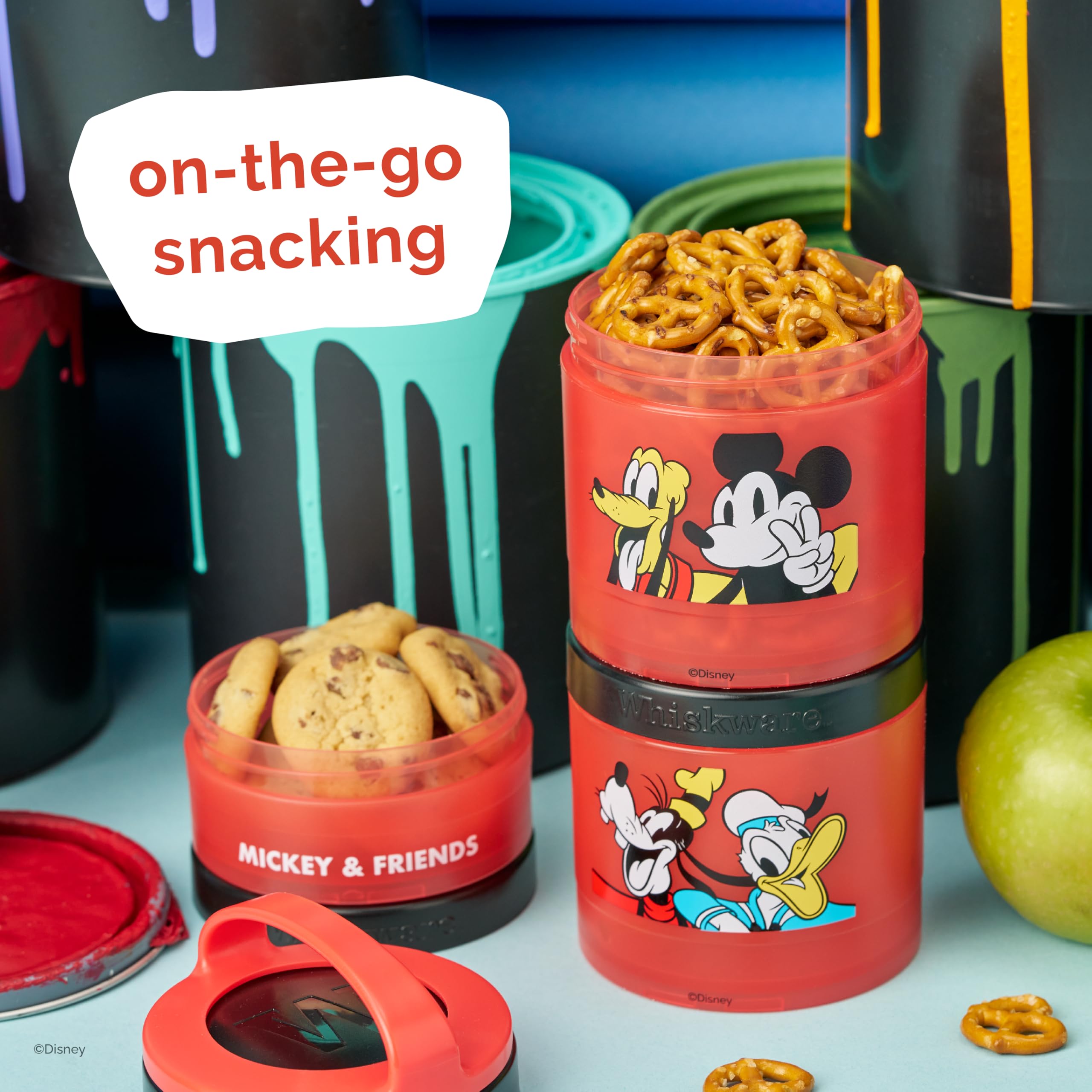 Durable, stackable snacking containers designed to make eating easy, fun, and mess free