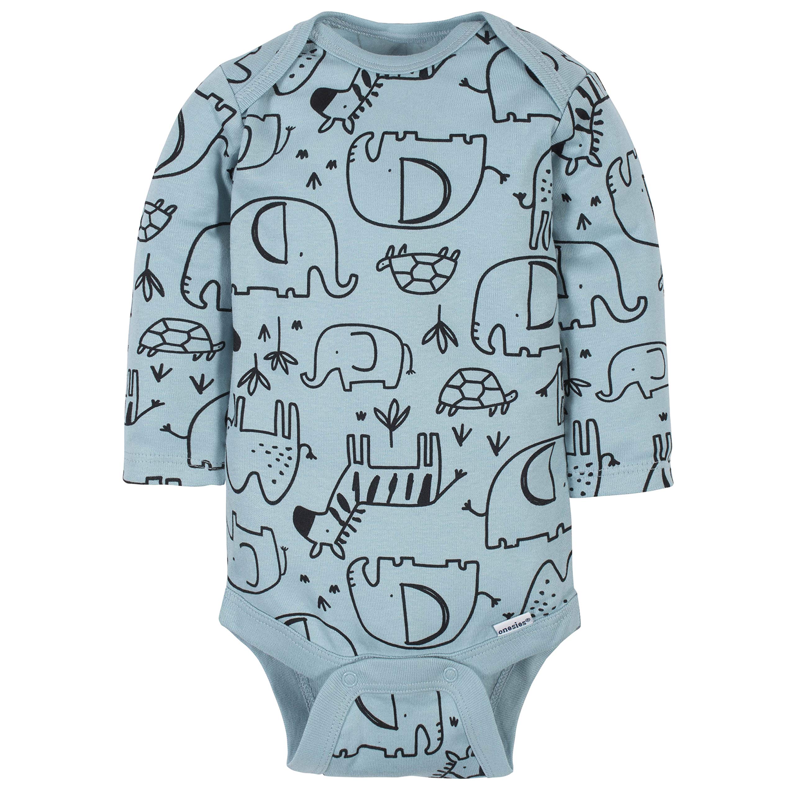 Description Baby Onesies bodysuits are truly a must-have! These adorable, assorted Onesies bodysuits are made with a soft cotton fabric thatโs perfectly comfortable against babyโs delicate skin. Baby will love how breathable this material is! We had this product independently certified with STANDARD 100 by OEKO-TEXยฎ so that you donโt have to worry about harmful substances in your babyโs clothing. This pack includes four bodysuits. These Onesies bodysuits are an excellent choice for any baby boy. These bodysuits are perfect to mix and match to create endless outfit options! Pair them with baby pants, baby shorts, or cute baby socks to create fun and comfortable outfits your baby boy is sure to love! The precious assortment of colors, patterns, and artwork make these bodysuits a fashionable choice suitable for everyday wear. These outfits are sure to be a favorite. These classic baby clothes feature lap shoulder necklines that make wardrobe changes easier than ever. The necklines allow the garment to slip over babyโs head in total comfort. They also feature bottom snap enclosures that are conveniently positioned higher in front to quicken diaper changes. These baby boy Onesies bodysuits come in a wide range of sizes to fit babies through all of their developmental milestones. Bodysuits are an excellent choice for all seasons and any time of day. In the warm months they make adorable outfits all on their own and increase babyโs mobility as babyโs legs and arms are free to move about as they please. In the cooler months, they may be worn under baby clothes during the day and under baby pajamas or baby gowns during the night for an extra layer of warmth. Gerber Onesies bodysuits are machine washable and machine dryable. No parent or caretaker has time to fuss with handwashing clothing, so Gerber takes special care to make sure these bodysuits may be washed and dried over and over without wear and tear. Onesies bodysuits make stylish and practical gifts that are sure to complement and enhance any babyโs wardrobe. Adorable and affordable, these bodysuits truly are high-quality. Gerber offers products parents can trust for baby.