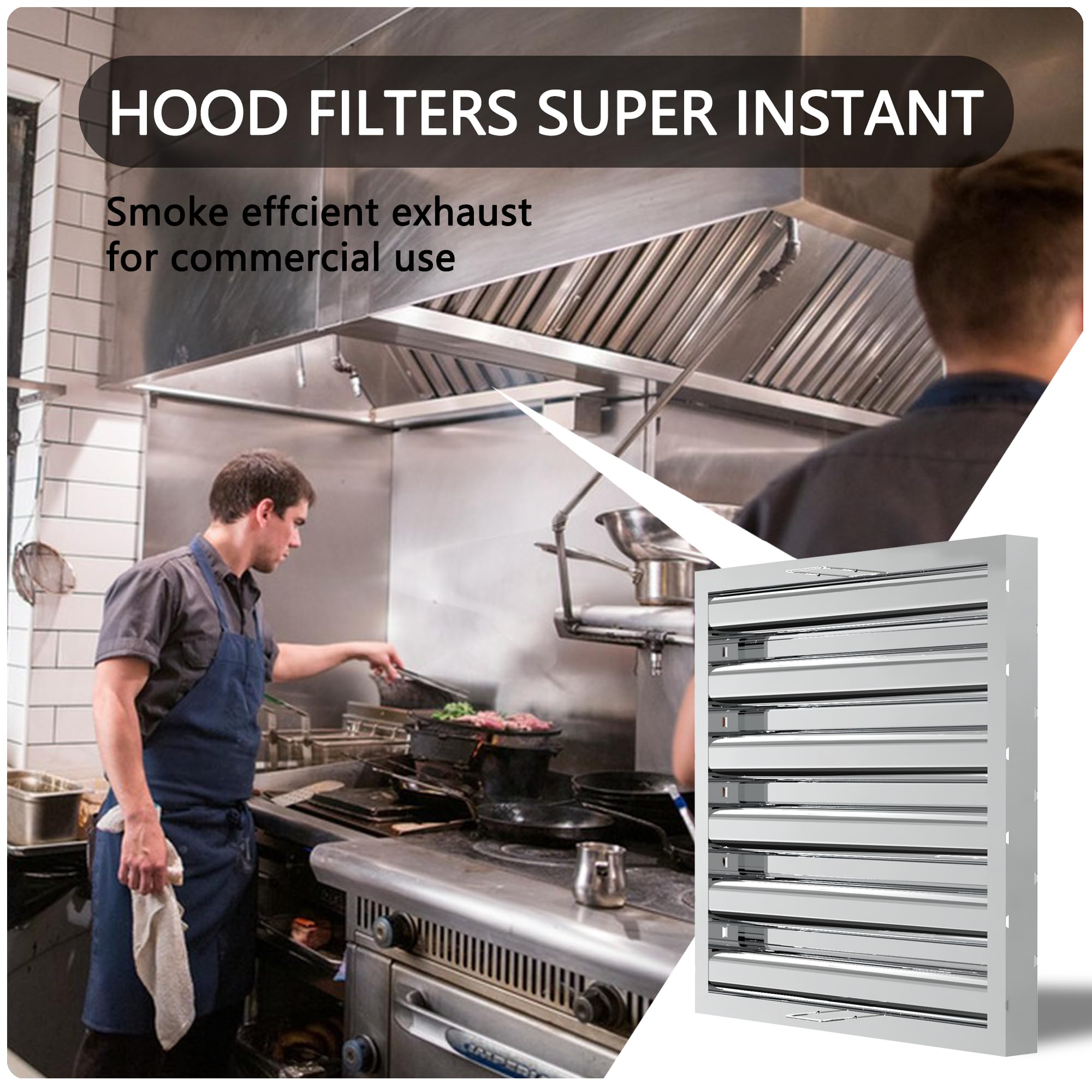 Perfect Fit: Measuring 19.5W x 19.5H inches, our hood filter is specifically designed to fit most standard commercial kitchen exhaust hoods. With its 5 grooves, it provides enhanced filtration efficiency, minimizing the risk of grease buildup and fire hazards.