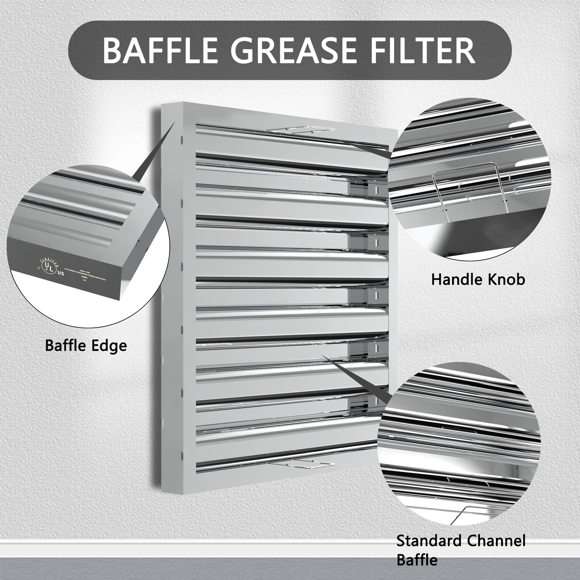 Superior Quality: This Commercial Kitchen Hood Filter is made of high-grade stainless steel, ensuring stability and durability. It effectively traps grease and prevents it from entering the exhaust system, maintaining a clean and safe kitchen environment. UL/NSF certified with quality assurance.