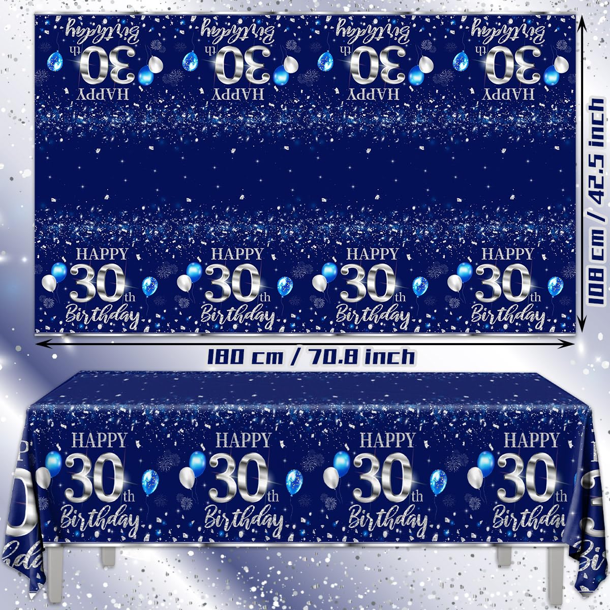đ°ăPackage IncludesăYou will get 3 rectangular 30th birthday tablecloth for men women.The size of each piece is about 70.8X42.5 inches, and the quantity size is enough to meet your birthday party decoration and replacement needs.