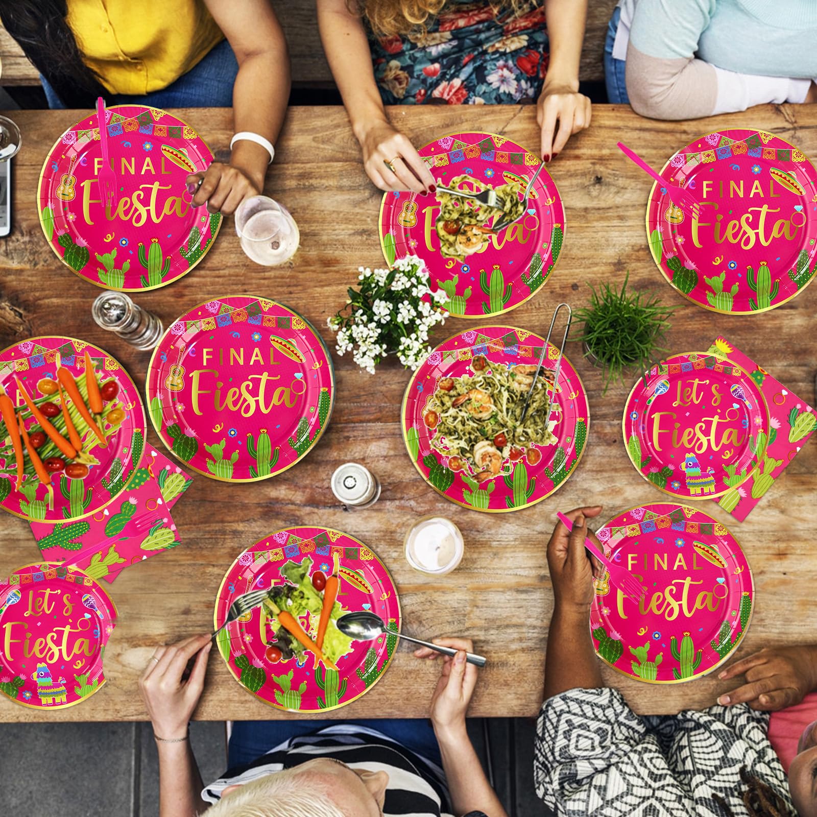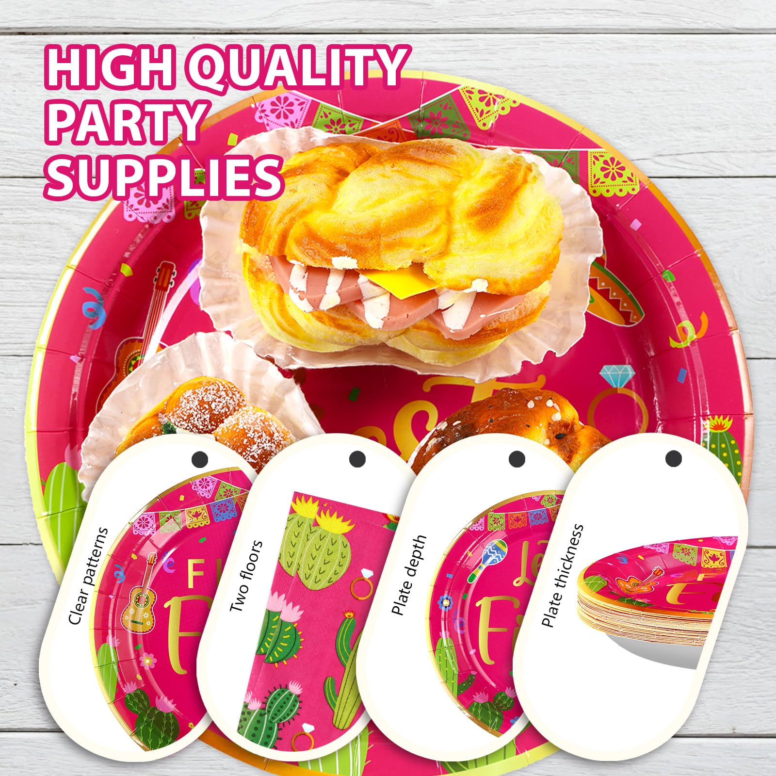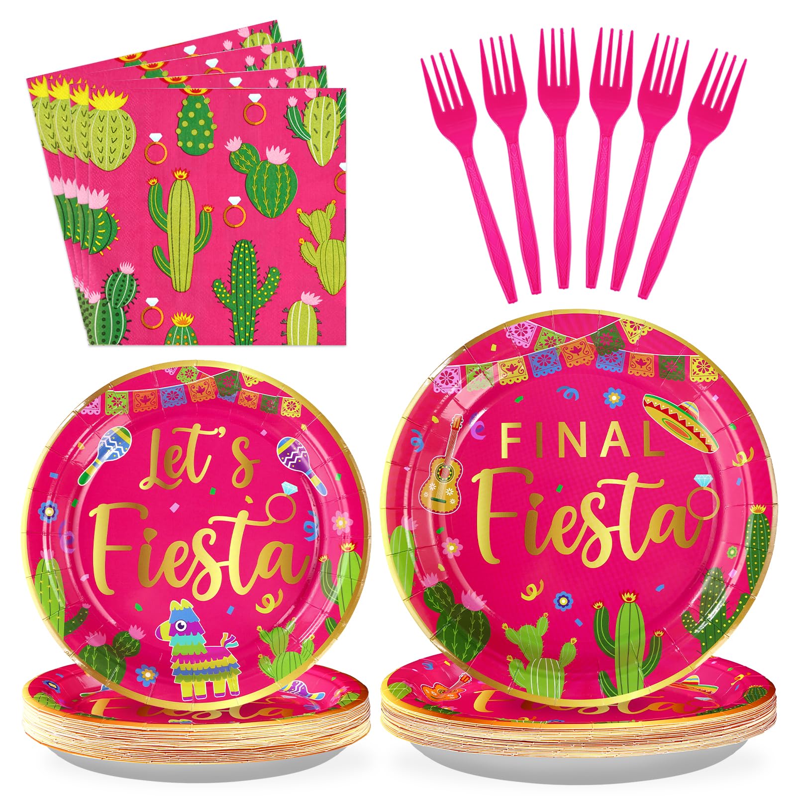 【Easy to Clean】The final fiesta birthday party tableware set is all disposable.With our hot pink fiesta party plates and napkins party supplies dinnerware, you can sit back and relax while the kids enjoy the party.Just pack it up and throw it away directly after the celebration