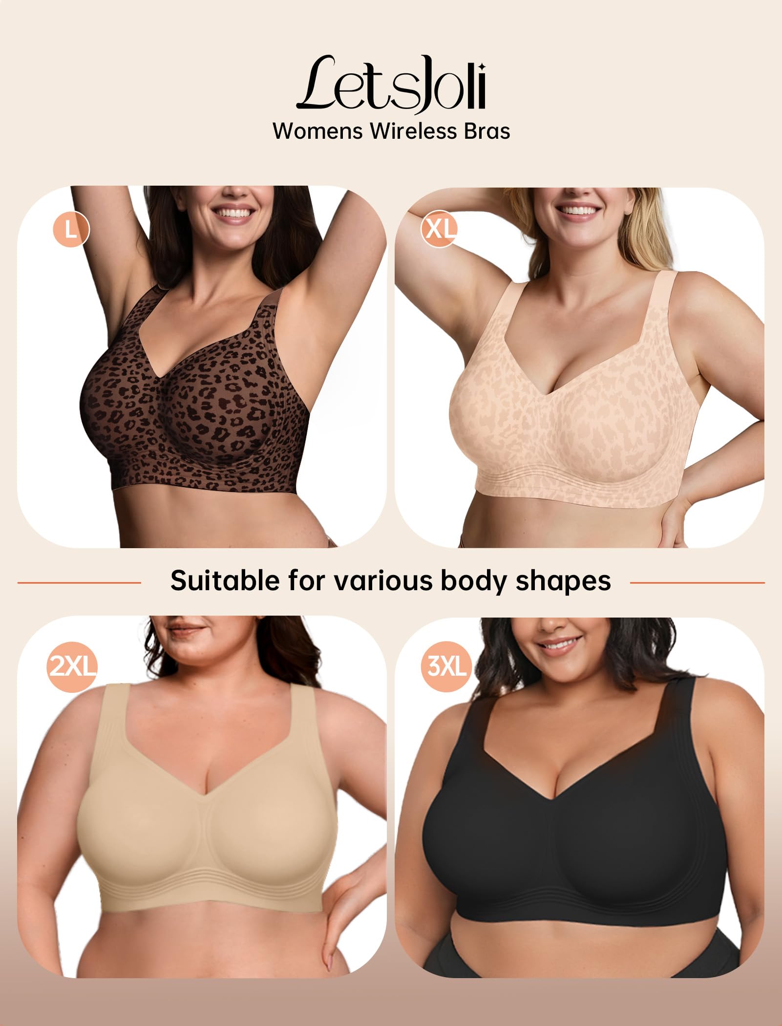 【U-back & Invisible Cross Straps,fit for All Occasions】 The U-back wearing is comfortable and unrestricted, ideal for everyday wear like traveling, working, and lounging at home. The seamless bra can be used as sleep bras, tshirt bras, yoga bra, light sport bra & casual everyday wear. The Cross-back style enhances support and lift, perfect for running, working out, and cycling. LetsJoli push up bras for women will go well with any outfit, such as a t-shirts, blouses, tank tops, dresses, etc.