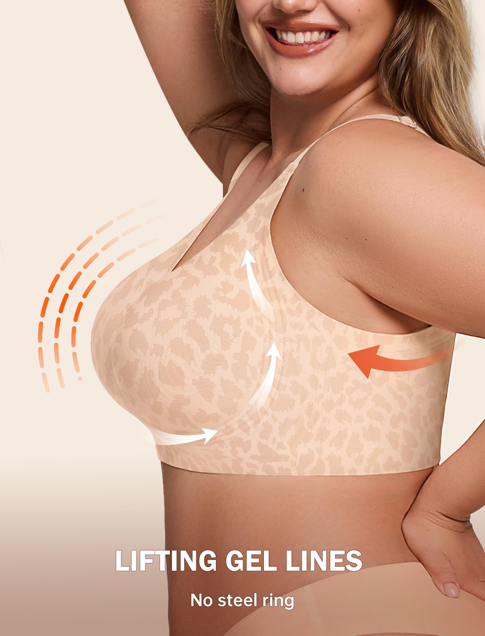 【Upgraded High Supportive Jelly Bras for Women】These wireless bras with support and lift are upgraded with 4-Layer 360° jelly strip support system that enhances your shape and controls bounce. You can even wear the push up bra as sports bras for women.The jelly bra offers all-day comfort, with no wires and no slippage.