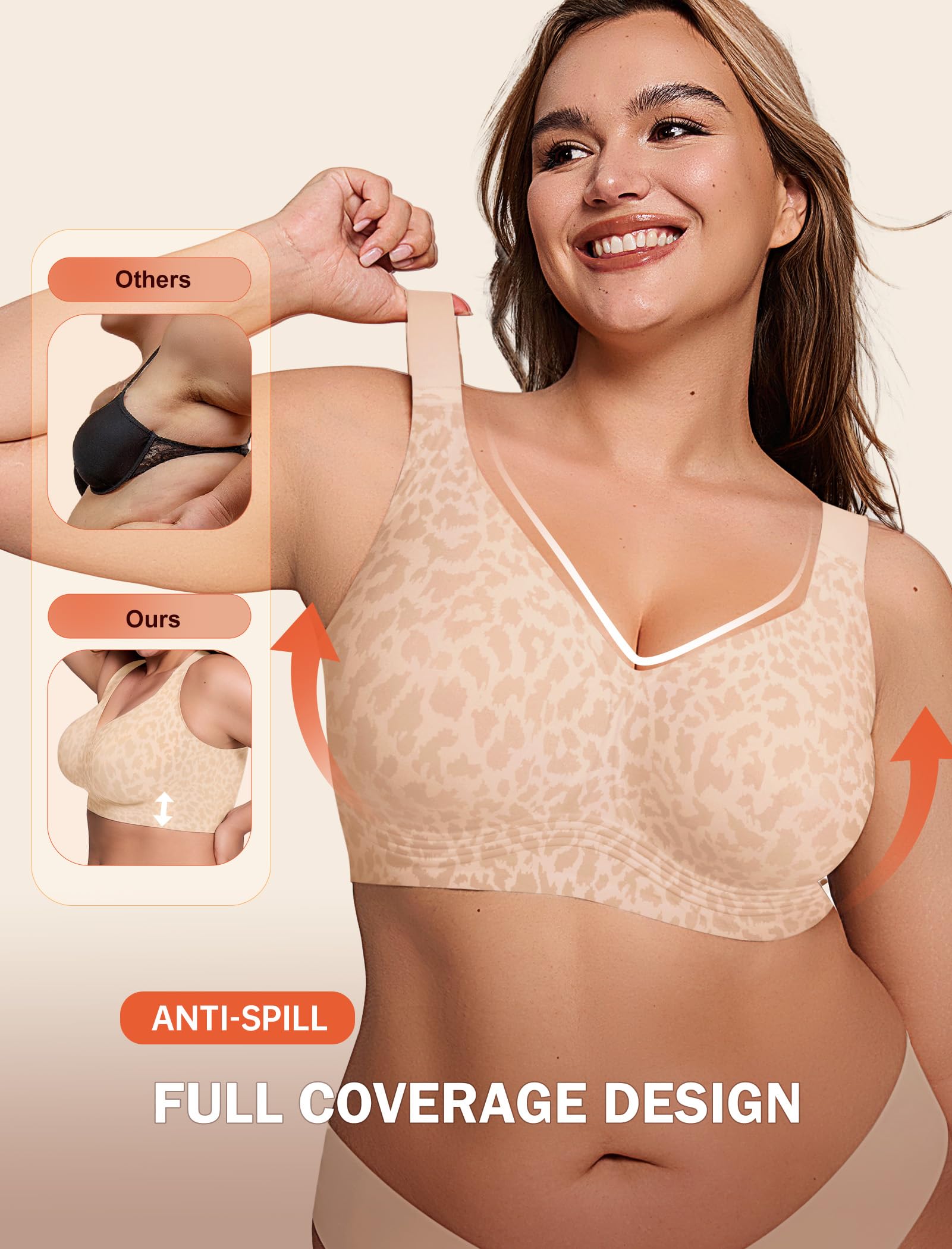 【Specially Designed for Fuller Figures】Full coverage bra design, higher side wings and side support strips, wider shoulder straps offering a maximum support and reducing breast movement during workouts or daily activities. The full coverage bras for women come in a variety of sizes, from S to 5XL, fit for CUP B to CUP DDD. Ideal for fuller figures, the wireless bras for women provide the perfect balance of comfort and style.