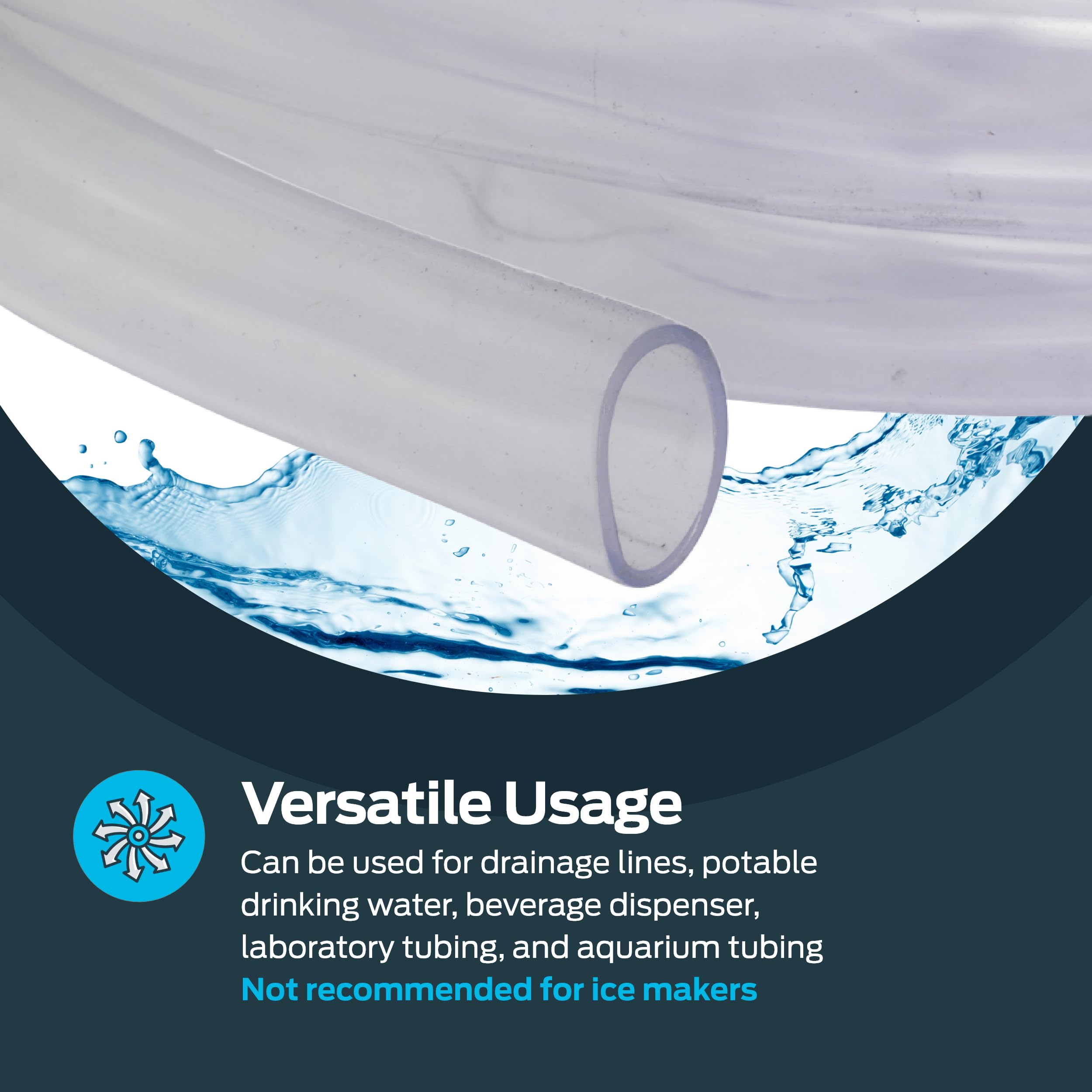 MULTI-PURPOSE USE: Great for drainage lines, potable water, beverage dispensers, aquarium tubing, and lab use; not recommended for ice maker supply